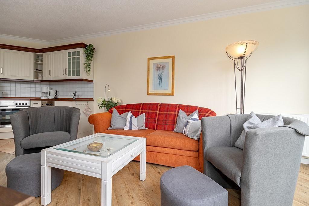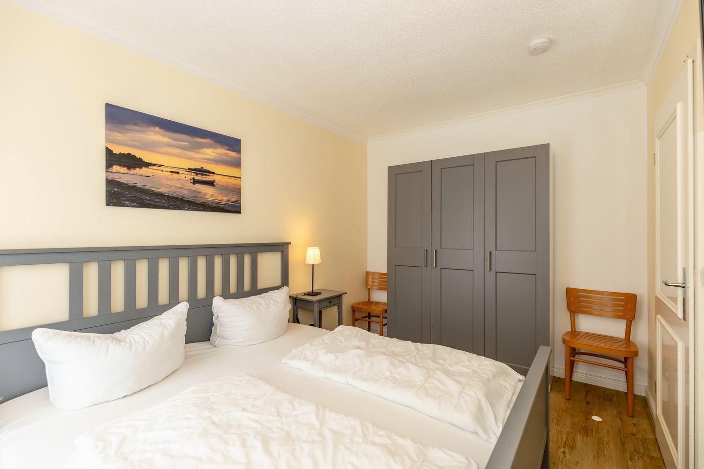 In der hellen und gemütlichen Ferienwohnung befinden sich 2 Schlafzimmer mit einem Doppelbett bzw. mit 2 Einzelbetten und einem Wohnbereich mit einer Doppelschlafcouch.
