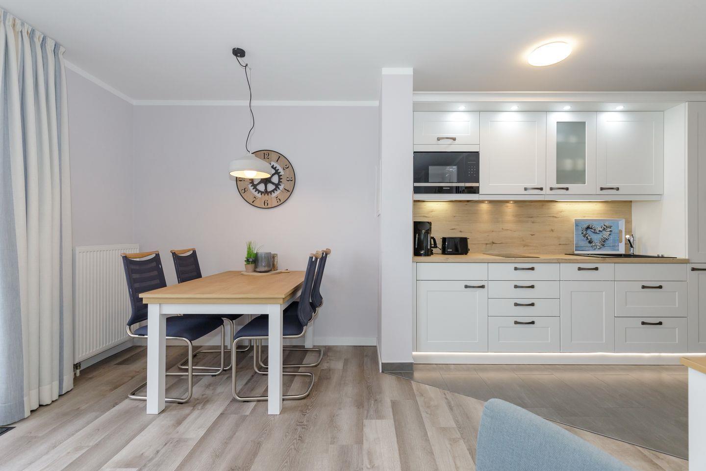 Das 47 m² große 2-Zimmer-Apartment ist für bis zu 4 Personen geeignet. Besonders hervorzuheben ist die direkte Strandlage der Apartmentanlage und der große nach Norden gelegene Balkon. Von hier aus habt ihr einen uneingeschränkten Blick auf die nahegelegene Ostsee.