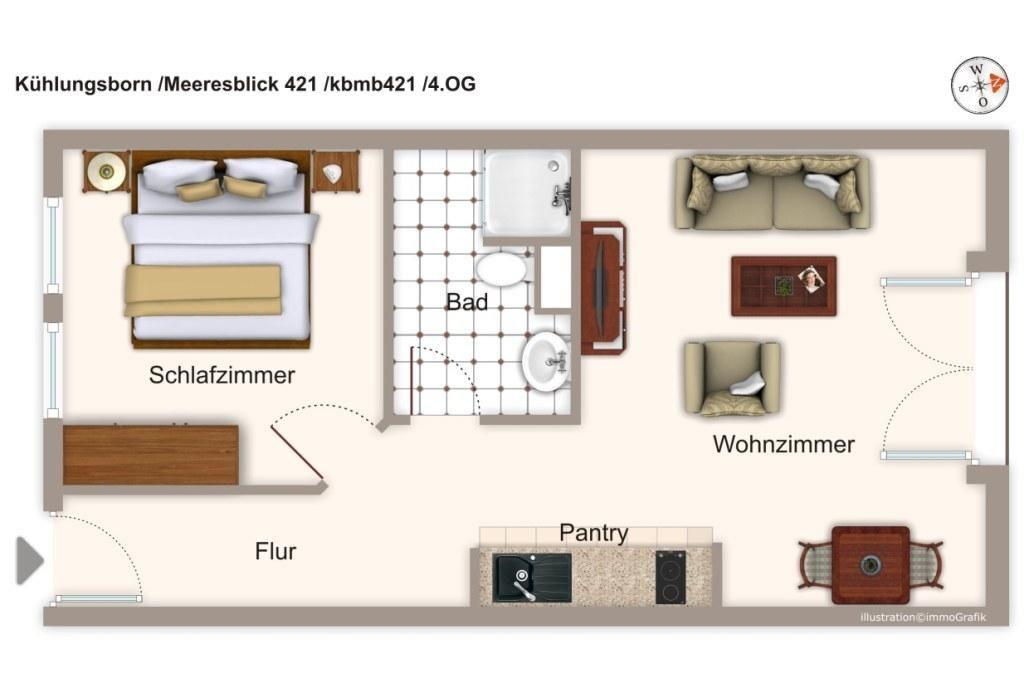 Das 41 m² große 2-Zimmer-Apartment ist für bis zu 2 Personen geeignet. Besonders hervorzuheben ist die direkte Strandlage der Apartmentanlage und der nach Norden gelegene Balkon mit einzigartigem Blick auf die nahegelegene Ostsee.
