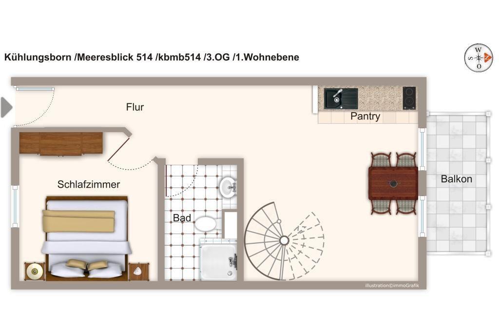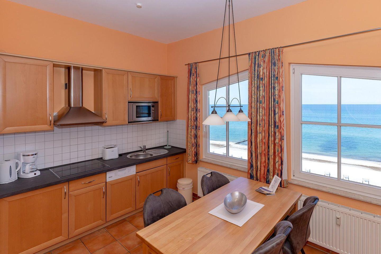 Die 84 m² große 3-Zimmer-Turmwohnung erstreckt sich über drei Etagen und ist für bis zu 4 Personen geeignet. Besonders hervorzuheben ist die direkte Strandlage der Apartmentanlage und der großartige Meerblick aus dem Apartment und von dem nach Norden gelegenen Balkon auf die Ostsee.