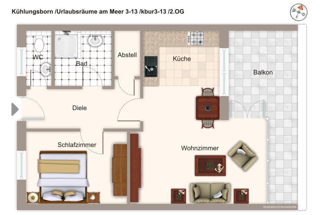 In exklusiven Apartments könnt ihr in der Ferienwohnungsanlage Urlaubsräume am Meer in Kühlungsborn zu zweit euren Urlaub verleben. In unmittelbarer Yachthafennähe befindet sich dieses 2-Zimmer-Penthouse mit 57 qm und einem Balkon mit Meerblick.