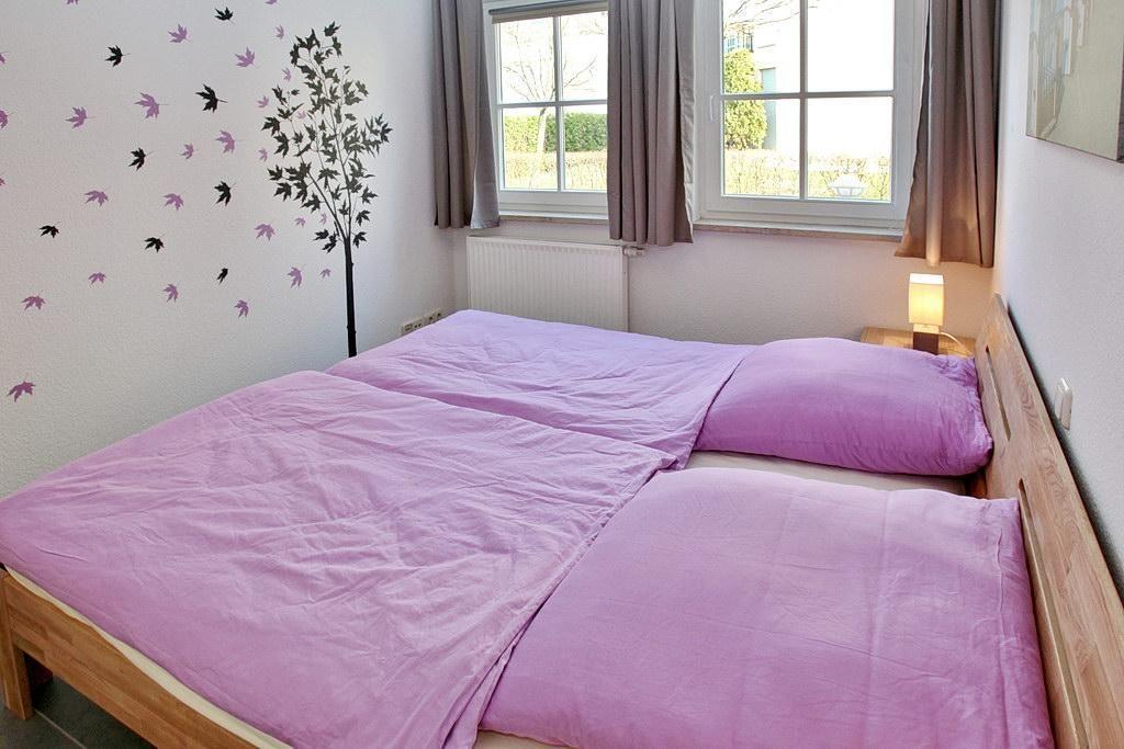 Die Ferienwohnung mit Fußbodenheizung besteht aus zwei separaten Schlafzimmern mit jeweils einem Doppelbett. Die voll ausgestattete offene Küche verfügt über Backofen, Geschirrspüler, Tiefkühlfach, Mikrowelle, Wasserkocher, Kaffeemaschine und Toaster. Im geschmackvollen Bad befinden sich Dusche, WC, Waschtisch und Föhn.