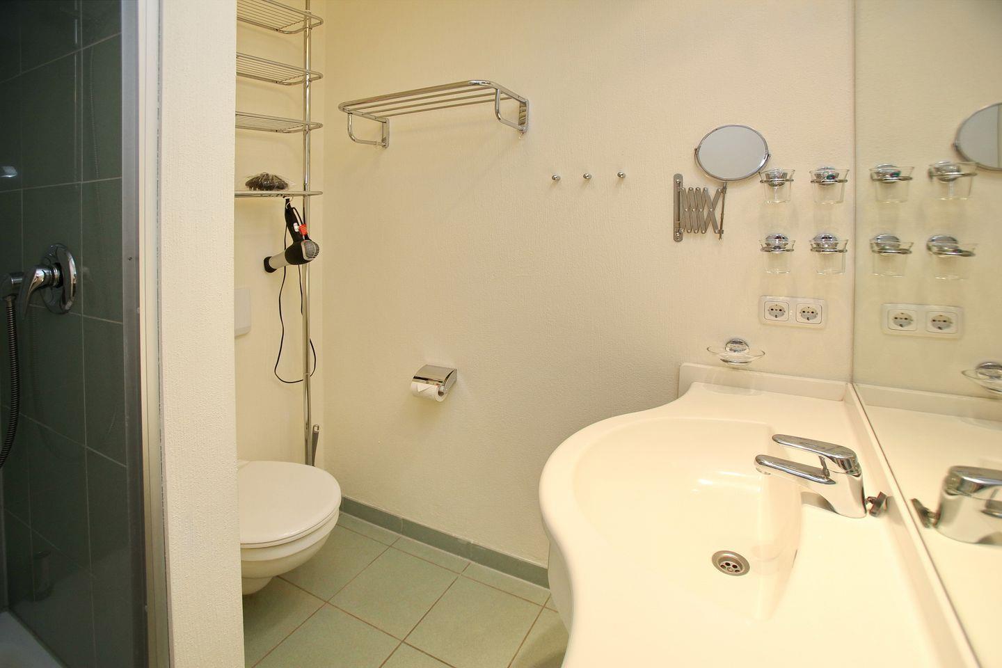 Im 1. Obergeschoss befindet sich die Ferienwohnung, auf der Westseite der Apartmentanlage „Strandstraße 16“, die nahe des Zentrums mit zahlreichen Restaurants und Einkaufsmöglichkeiten liegt – Strand und Seebrücke sind nur 800 Meter entfernt.