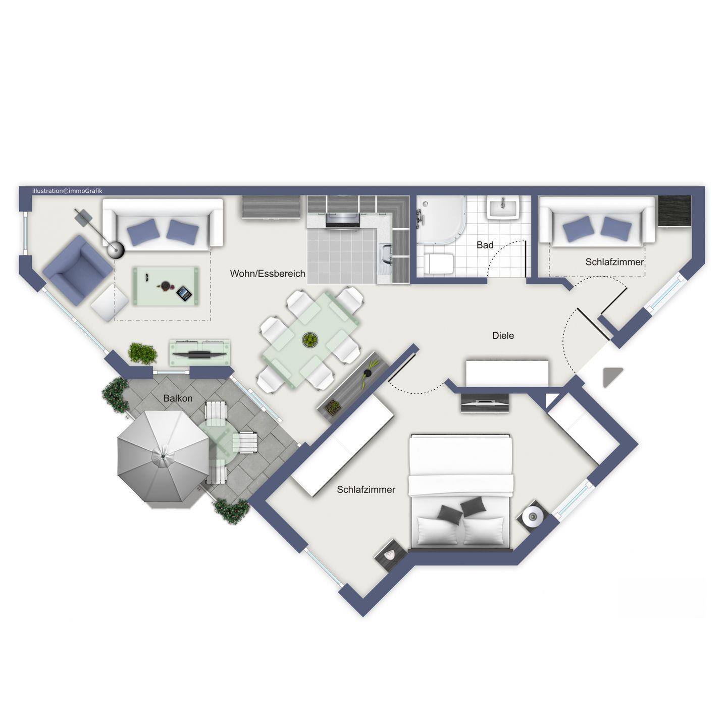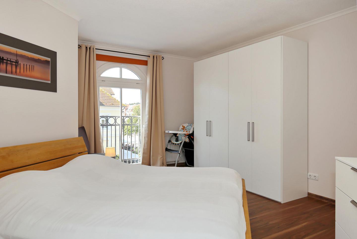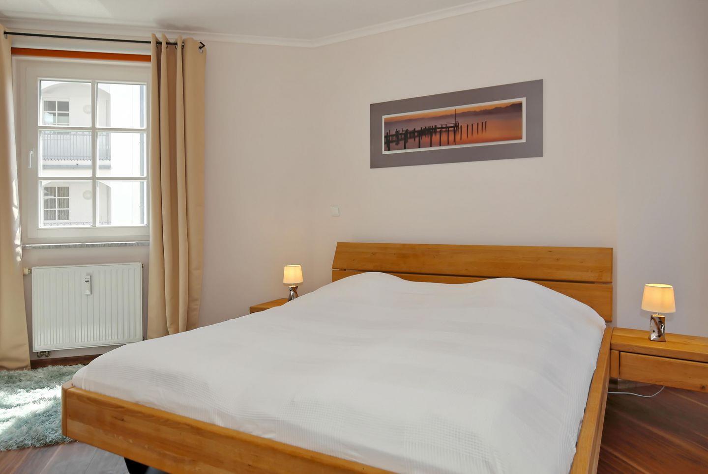 Im ersten Schlafzimmer der Ferienwohnung verspricht dir ein komfortables Doppelbett (2 x 90 x 200 cm) eine erholsame Nachtruhe. Ein großer Kleiderschrank bietet dir viel Stauraum für dein Urlaubsgepäck. Ein Flachbild-TV sorgt auch hier für abendliche Unterhaltung. Das zweite Schlafzimmer ist mit einer Schlafcouch (148 x 195 cm) ausgestattet. Auch hier bietet dir ein Kleiderschrank Stauraum. Die Schlafcouch (160 x 200 cm) im Wohnbereich wird schnell zu einem bequemen Schlafplatz für 2 Personen. In beiden Schlafzimmern sowie im Wohnbereich sind Vorhänge und Rollos als Sichtschutz oder zum Verdunkeln angebracht.