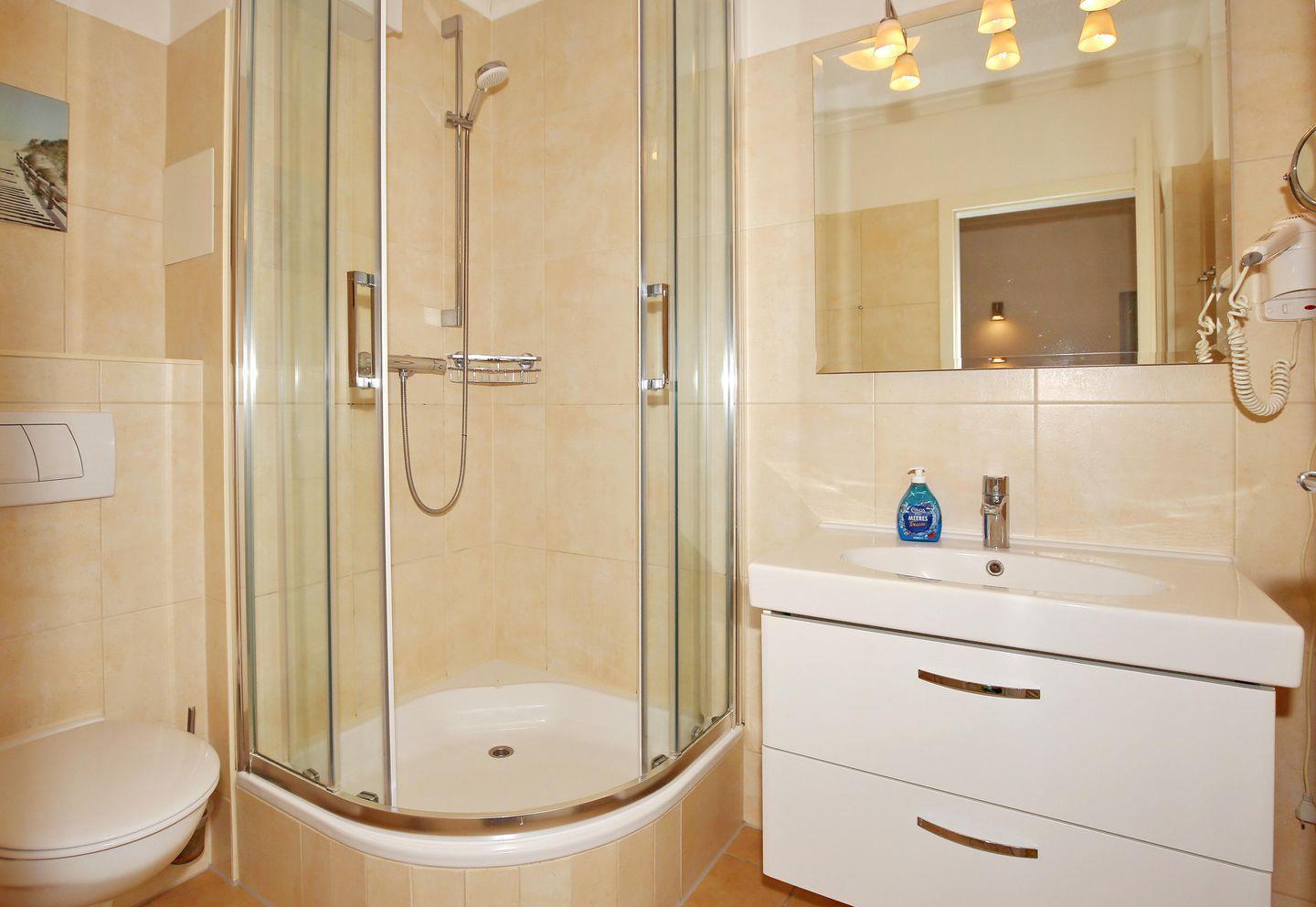 Das helle und moderne Duschbad mit WC verfügt über einen beleuchteten Spiegel und einen Waschtisch. Dieser bietet dir Ablagemöglichkeiten für deine Waschutensilien. Das Bad ist gefliest. Im Wohnraum sowie in den Schlafzimmern sind ein Vinyl-Boden verlegt. Ein Teppich vor der Couch sowie Läufer im ersten Schlafzimmer sorgen für Behaglichkeit. Es handelt sich um eine Nichtraucherwohnung. Haustiere sind hier nicht erlaubt.