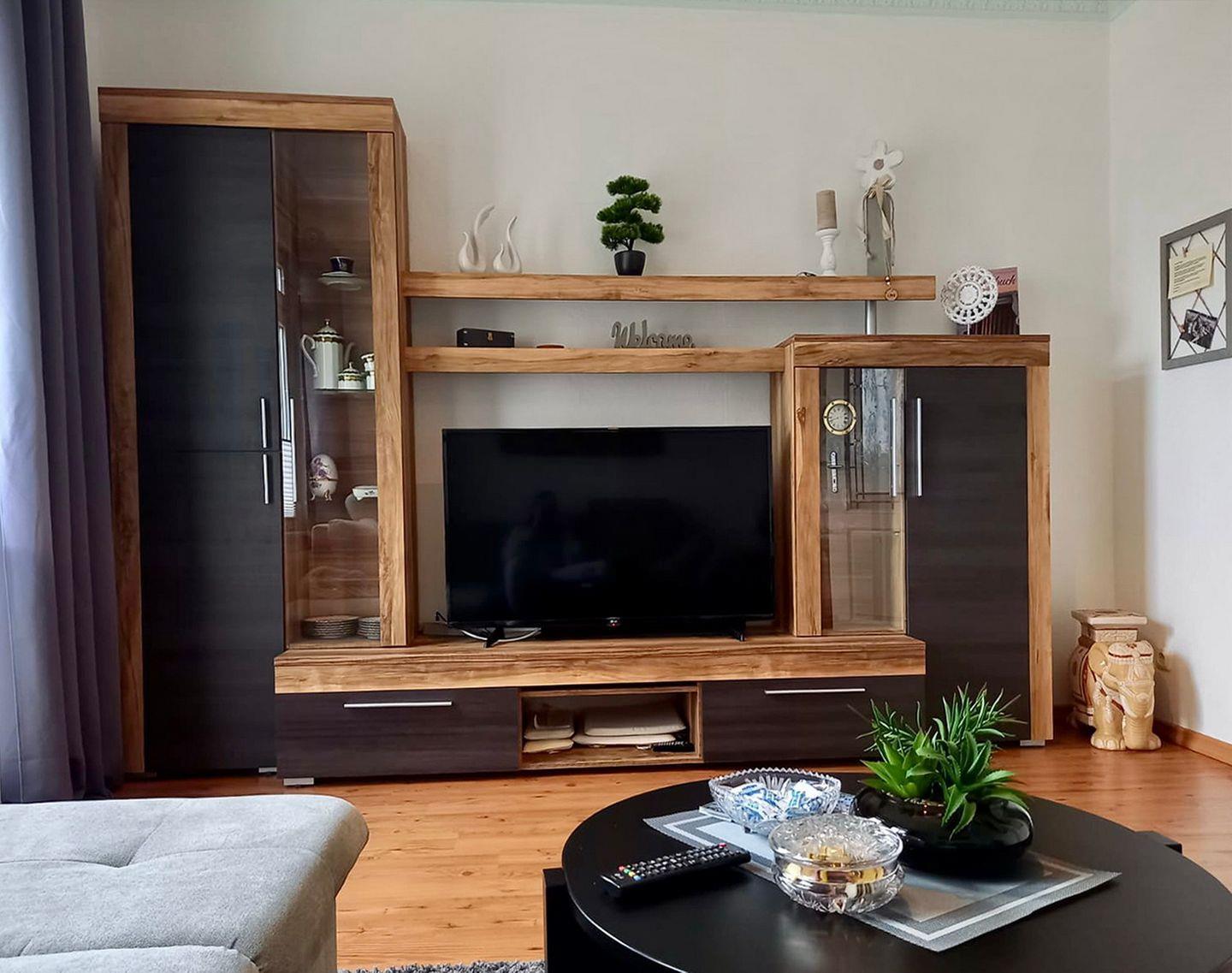 Der Wohnbereich verspricht dir mit einer schönen Sitzecke, einer bequemen Couch, zwei Sesseln und einem Couchtisch gemütliche Abende. Zur Unterhaltung stehen dir ein Flachbild-TV, ein CD-Player und ein WLAN-Anschluss zur Verfügung. Der integrierte Essbereich befindet sich zwischen dem Wohnbereich und der Küche. Hier hast du ausreichend Platz für gemeinsame Mahlzeiten.
