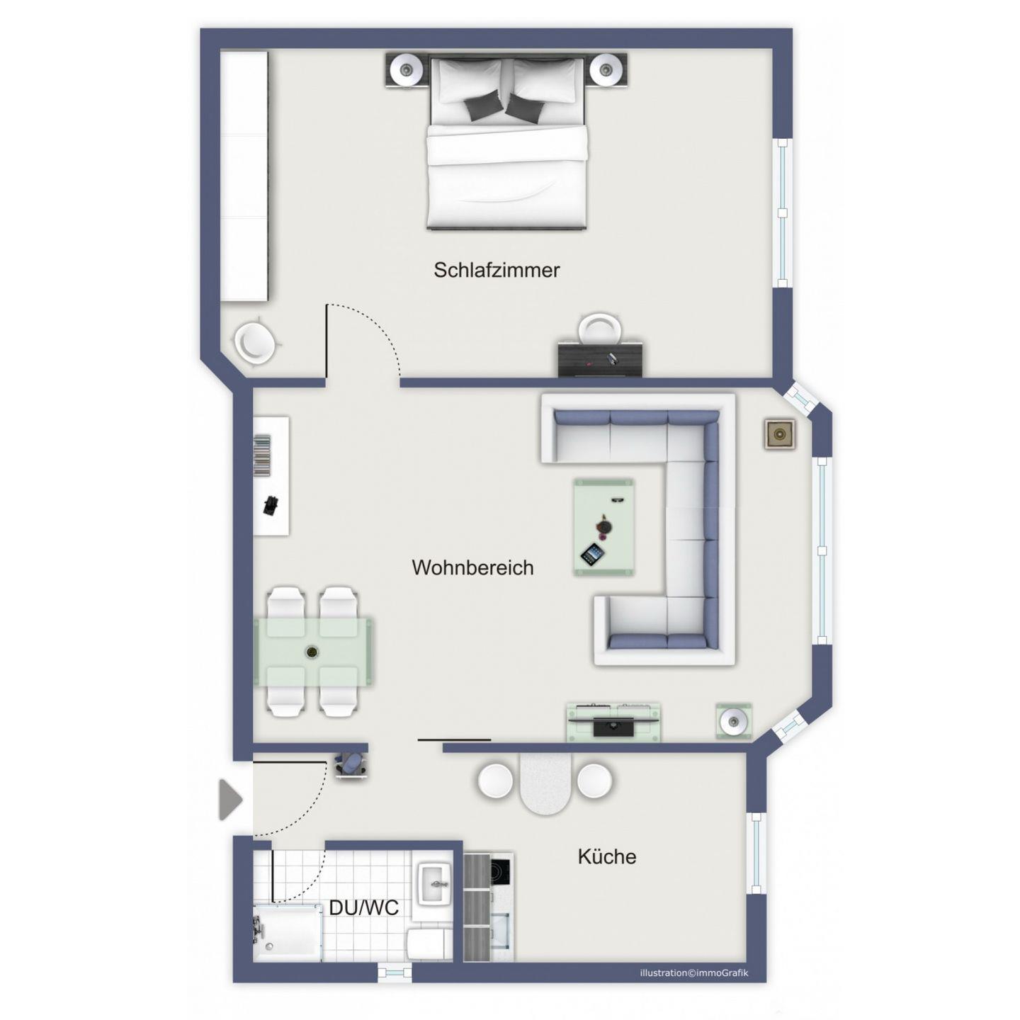 Der Wohnbereich verspricht dir mit einer schönen Sitzecke, einer bequemen Couch und einem Couchtisch gemütliche Abende. Selbstverständlich verfügt diese Wohnung über einen TV und einen WLAN-Anschluss. Am Essbereich hast du ausreichend Platz für gemeinsame Mahlzeiten.