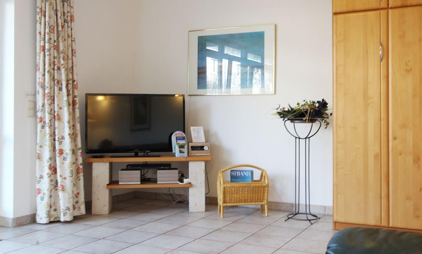 Die Ferienwohnung Seitz begrüßt Sie im Ostseebad Kühlungsborn in unmittelbarer Nähe zum feinsandigen Ostseestrand. Die im Erdgeschoß gelegene Unterkunft bietet auf einer Wohnfläche von 50 m² eine angenehme Raumaufteilung, die sowohl Alleinreisenden als auch Paaren und kleinen Familien einen angenehmen Aufenthalt ermöglicht. Ein separates Schlafzimmer mit gefliestem Boden sorgt für erholsame Nachtruhe. Das moderne, offene Wohnkonzept verbindet das Wohnzimmer mit einer gut ausgestatteten Küche, sodass Sie auch im Urlaub nicht auf Wohnkomfort verzichten müssen. Große Fenster mit Sichtschutz und die gefliesten Böden im Wohn- und Schlafbereich verleihen der Wohnung eine helle, freundliche Atmosphäre, die durch die bequeme Sofaecke und einen Sessel abgerundet wird.