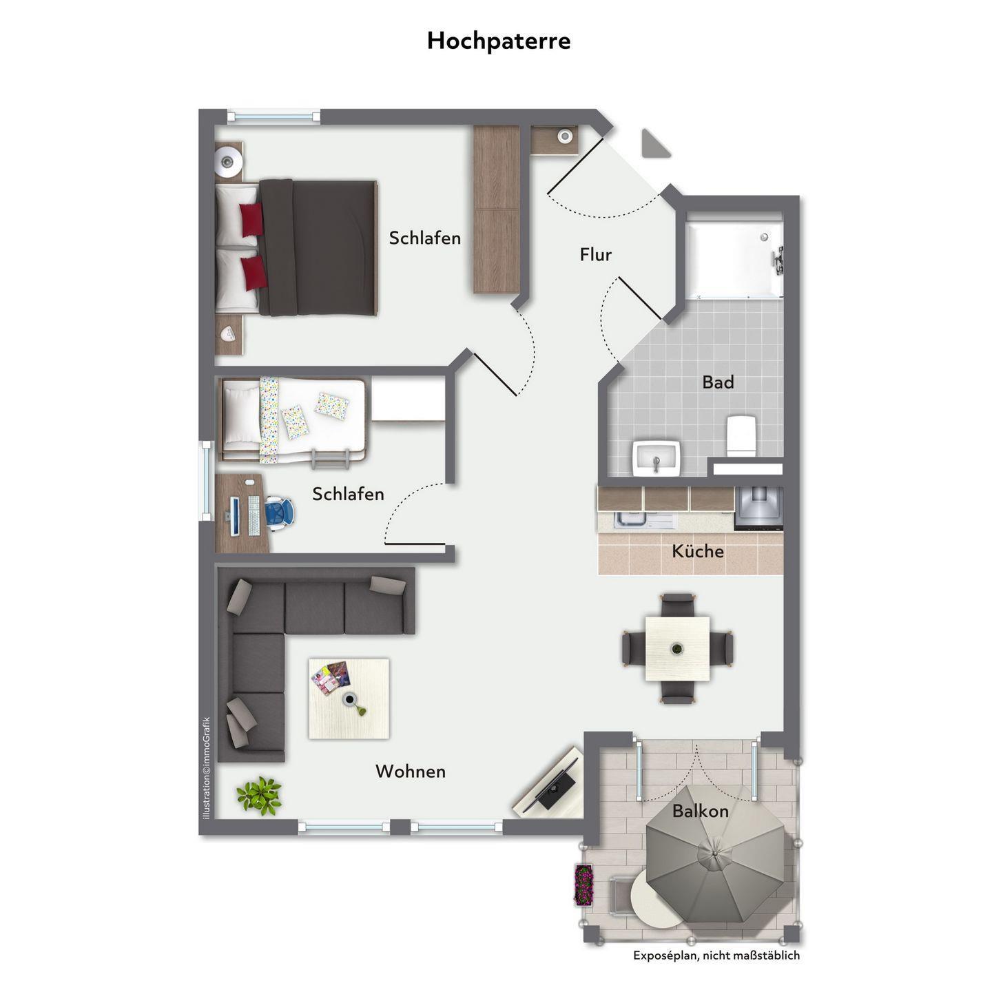 Das erste Schlafzimmer ist mit einem großen Doppelbett für süße Träume sowie mit einem geräumigen Kleiderschrank ausgestattet, der genügend Stauraum für die mitgebrachte Urlaubsgarderobe bietet. Im zweiten Schlafzimmer befindet sich ein gemütliches ausziehbares Bett. In dieser Unterkunft stehen dir ein Kinderhochstuhl und auch ein zusätzliches Kinderreisebett mit Matratze für die ganz Kleinen kostenfrei zur Verfügung.