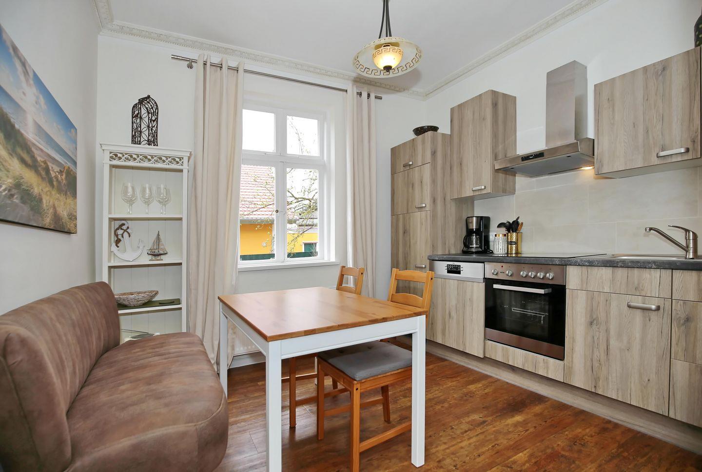 Die Ferienwohnung wurde Anfang 2023 mit viel Liebe zum Detail neu renoviert und möbliert und hat dank der großen Fenster einen ganz besonderen Charme. Über wenige Stufen gelangst du in die im Hochparterre gelegene, 50 m² große Ferienwohnung. Dich erwarten ein separates Schlafzimmer, ein Duschbad, ein heller Wohnbereich und eine separate Küche mit gemütlicher Essecke. Zum feinen Kühlungsborner Sandstrand sind es von hier aus nur ca. 300 Meter.
