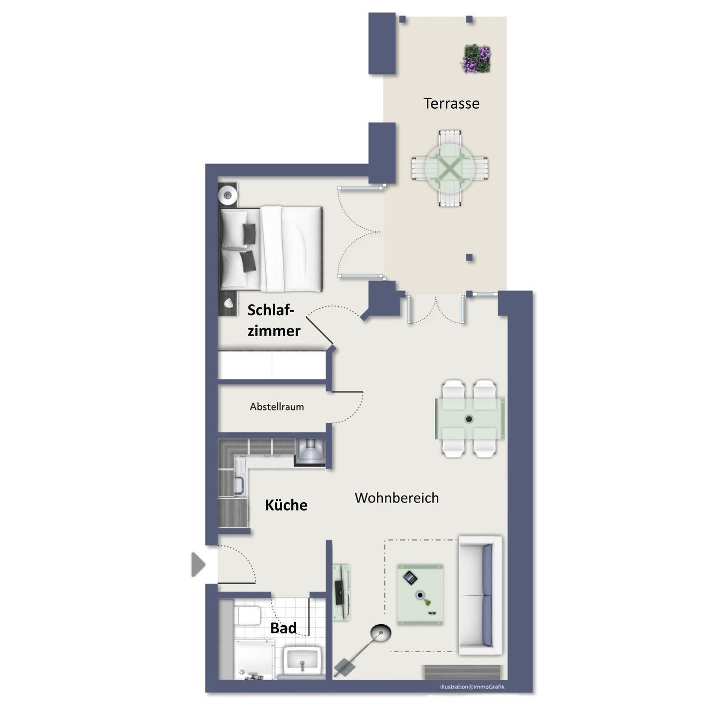 Die 60 qm große 2-Zimmer-Wohnung liegt im Erdgeschoss und bietet eine großzügige, möblierte Terrasse mit West- Ausrichtung für entspannte Stunden. Die Wohnung besteht aus einem Wohn- und Essbereich, einer Küchenzeile, einem Schlafzimmer und einem Duschbad und bietet Platz für bis zu 4 Personen. Der Strand ist nur etwa 300 Meter entfernt und das Stadtzentrum erreichen Sie in ca. 5 Minuten.