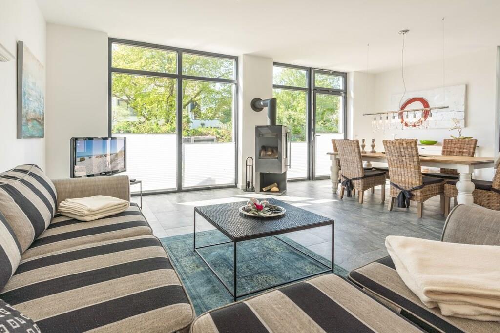 I månederne juli og august er ankomst og afrejse om lørdagen. Det eksklusive feriehus ligger i det unikt designede 5-stjernede kompleks "Vakon Ostseeland" i Østersøferiestedet Karlshagen. I februar 2023 blev alle rum malet om. Den smukke, brede, kilometerlange sandstrand kan nås på kun 5 minutter til fods. Stueetagen: - Stue og spisestue med pejs og udgang til terrasse og have - moderne og fuldt udstyret køkken - 1 soveværelse med 2 enkeltsenge (0,90 x 2,00) med myggenet - Badeværelse med stort bruseniche og toilet - Bryggers med vaskemaskine - Entre med garderobe. Øverste etage: - 1 soveværelse med dobbeltseng (1,80 x 2,00m) og rattan daybed til en anden person med myggenet - 1 soveværelse med dobbeltseng (1,80 x 2,00m) med myggenet - Badeværelse med bruseniche i gulv, toilet, sauna og udgang til terrasse Børns rejsesenge, høje stole, trappelåger, håndkærrer og grill er gratis til rådighed for gæsterne. Ferieboligen har desuden 2 parkeringspladser og et cykelskur,