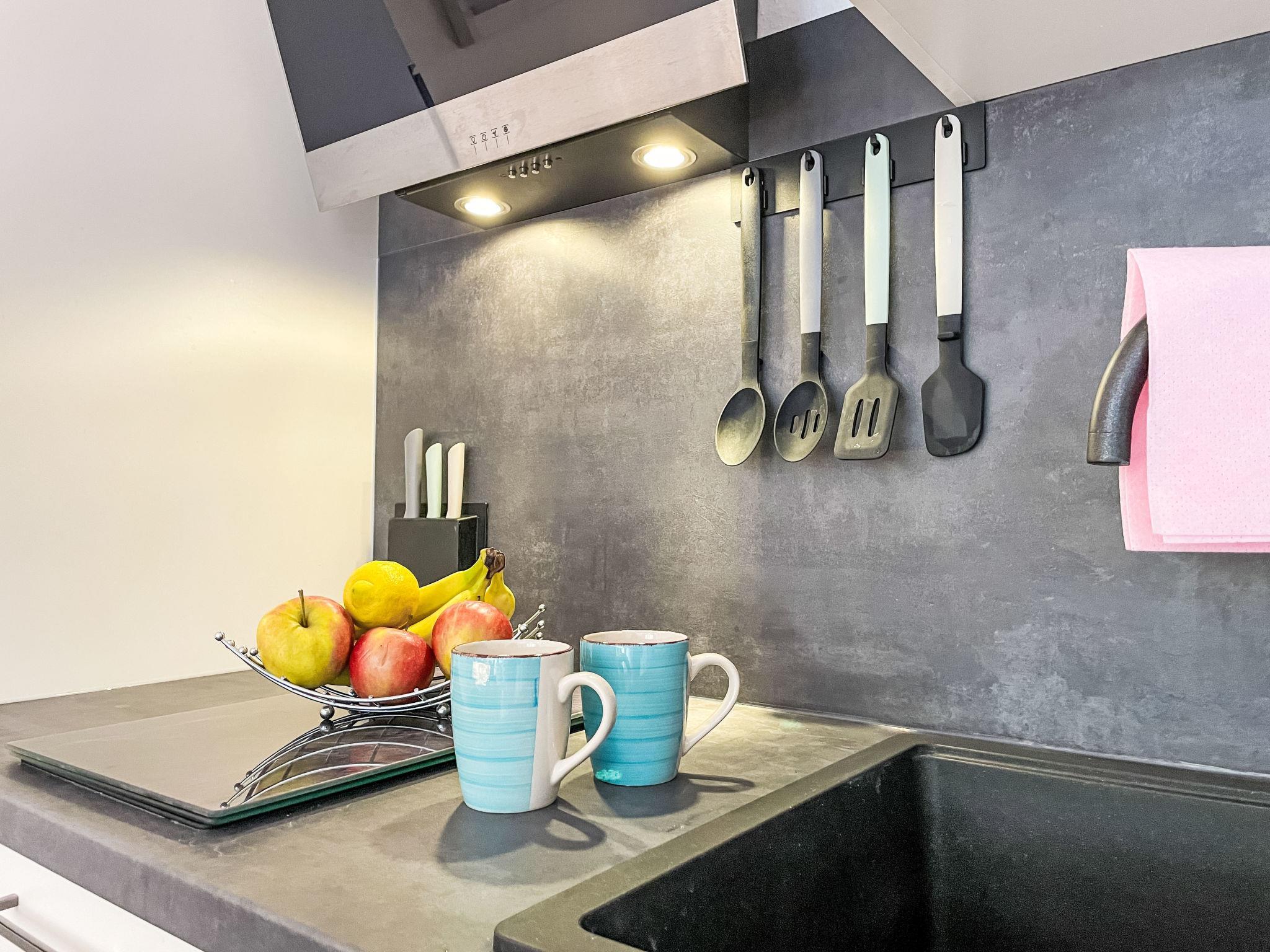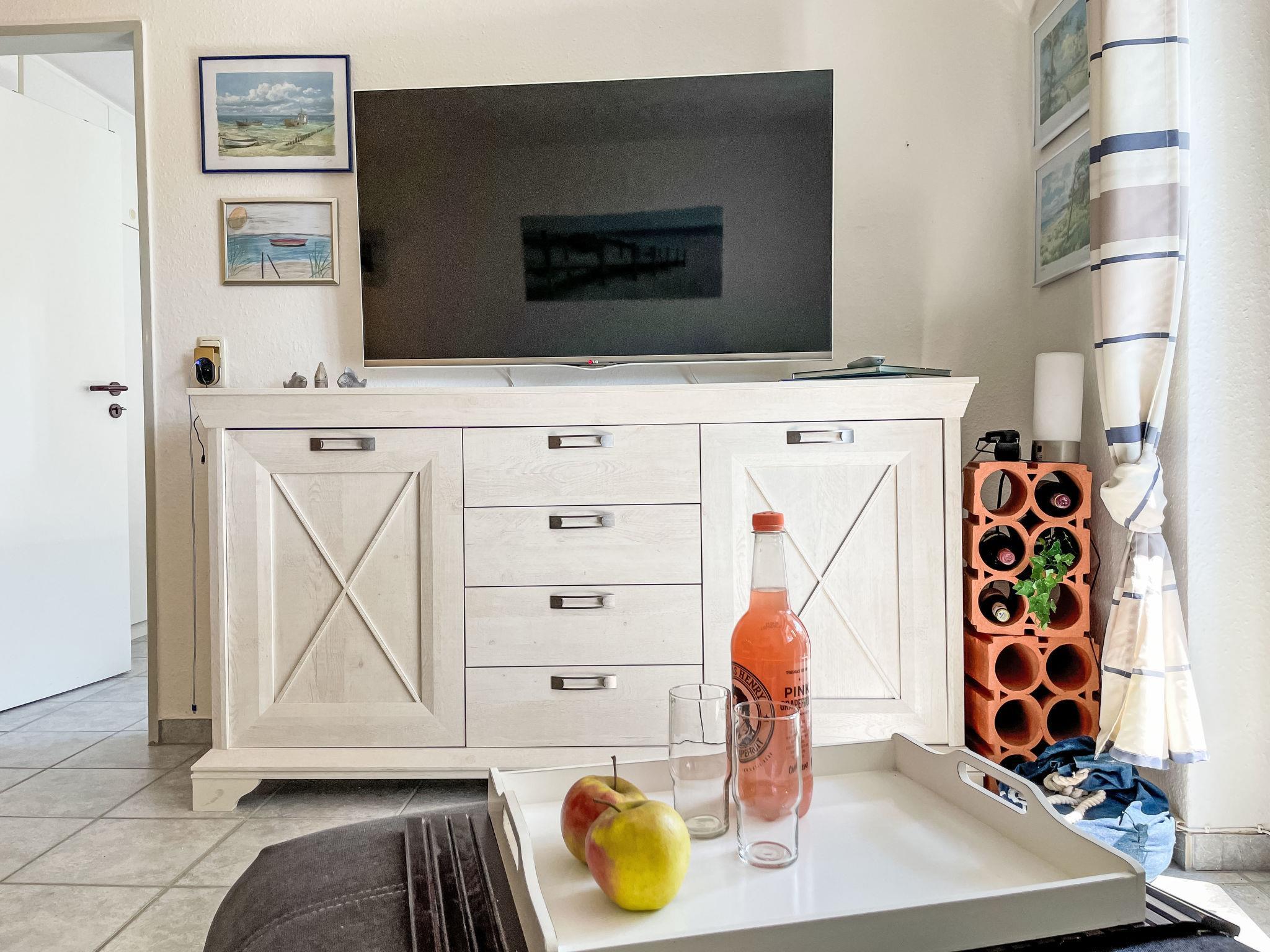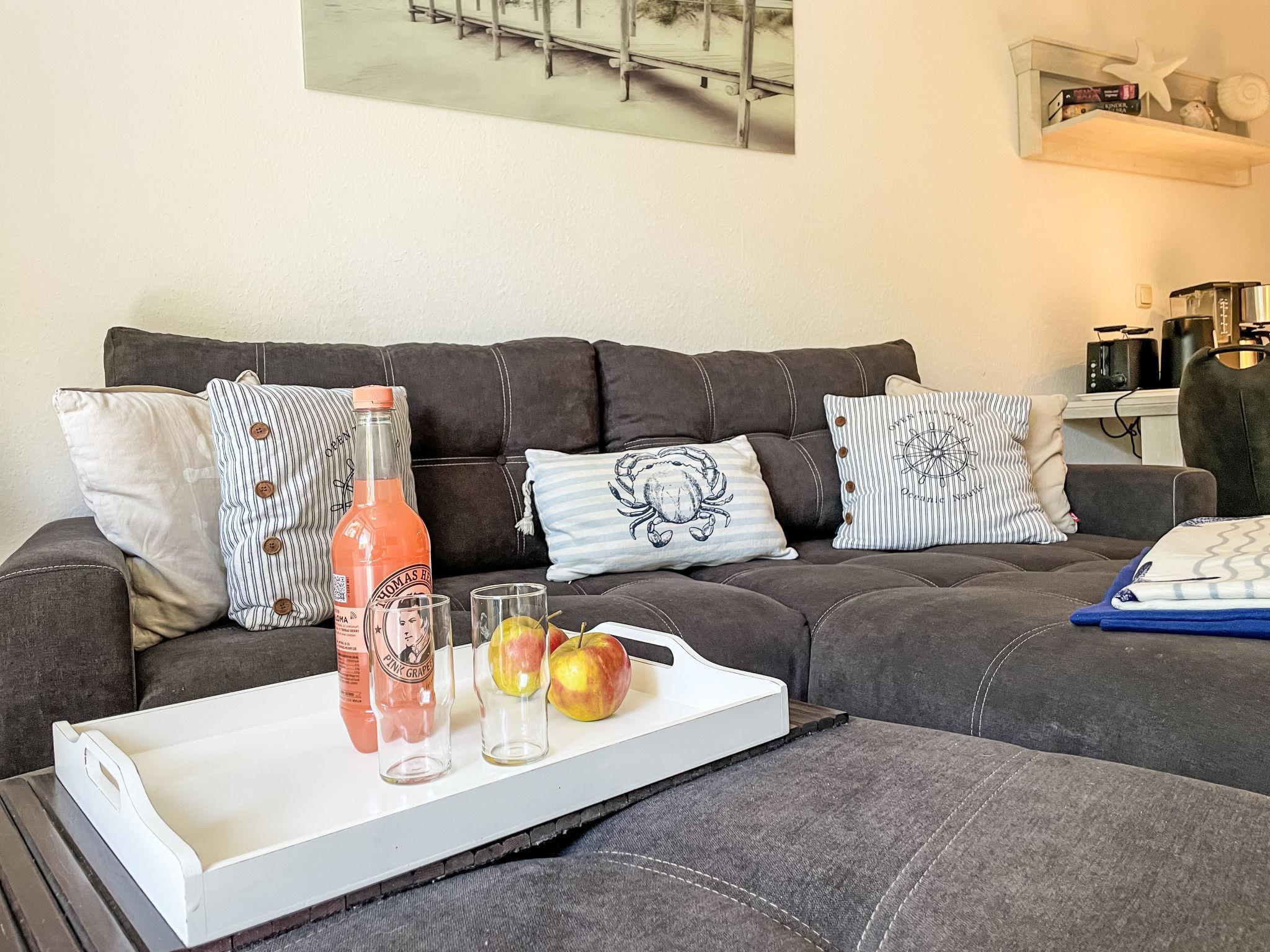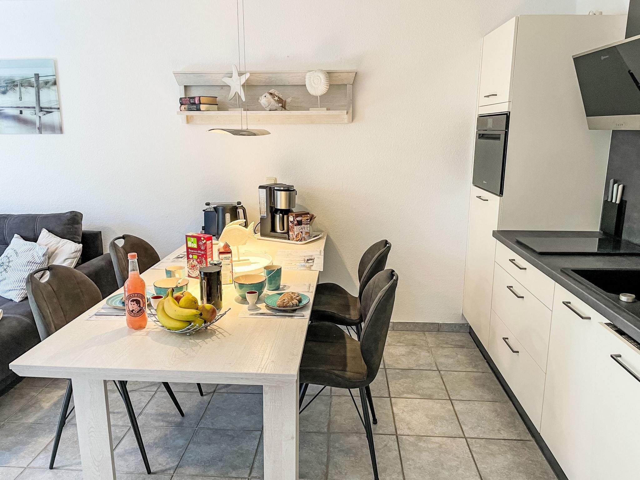 "Blaumuschel", 2-room apartment 45 m2 on 2nd floor. Cosy furnishings: living/dining room with dining table, satellite TV, hi-fi system and DVD. Exit to the balcony. 1 room with sloping ceilings with 1 double bed (180 cm, length 200 cm). Open kitchen (oven, dishwasher, 2 induction hot plates, toaster, freezer, electric coffee machine). Bath/WC. Natural stone floors. Balcony. Balcony furniture. Beautiful view of the forest. Facilities: baby cot. Internet (WiFi, free). Parking. Please note: non-smokers only. Smoke alarm.