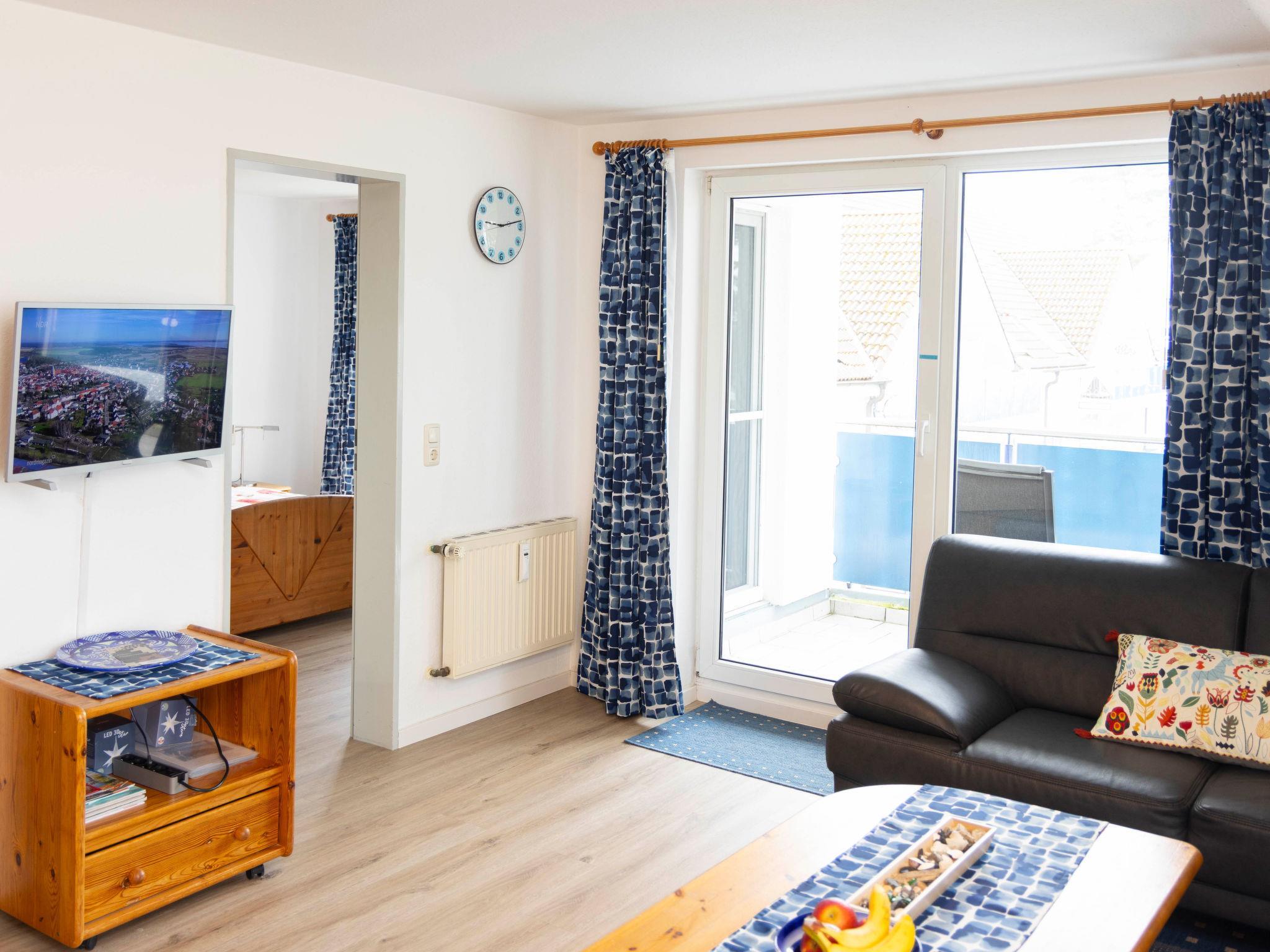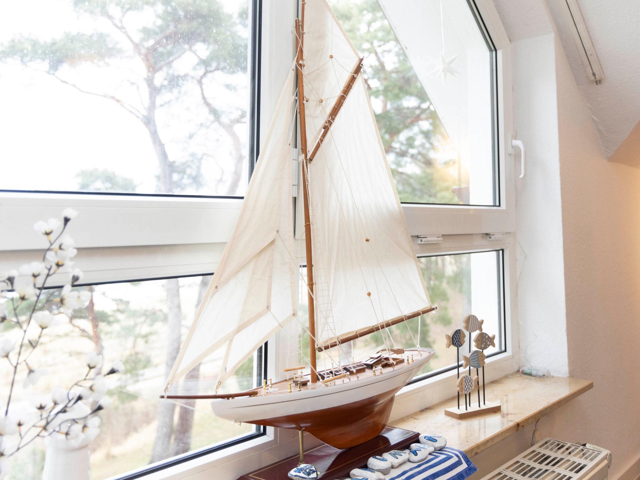 "Blaumuschel (LUB101)", 3-room apartment 70 m2 on 2nd floor. Bright, cosy furnishings: living room with sloping ceilings with dining table, satellite TV and radio. Exit to the balcony. 1 room with 1 double bed. Exit to the balcony. 1 room with sloping ceilings with 2 beds. Open kitchen (oven, dishwasher, 4 ceramic glass hob hotplates, toaster, microwave, electric coffee machine). Bath/WC. Balcony, south facing position and west facing position. Balcony furniture. Beautiful view of the sea. Facilities: children's high chair, baby cot. Internet (WiFi, free). Please note: non-smokers only. Smoke alarm.