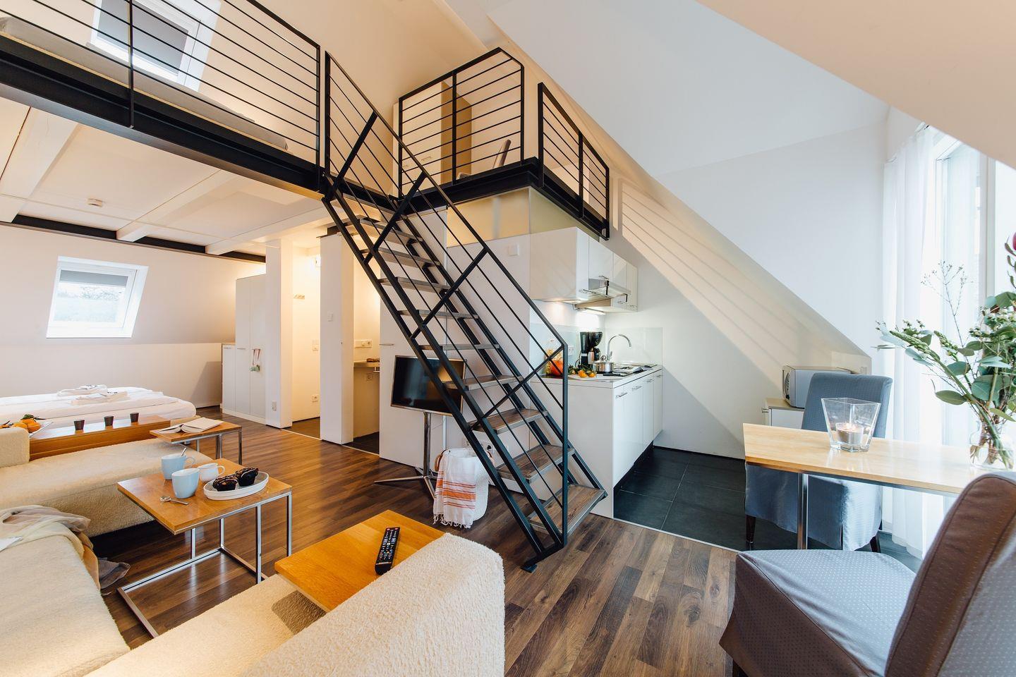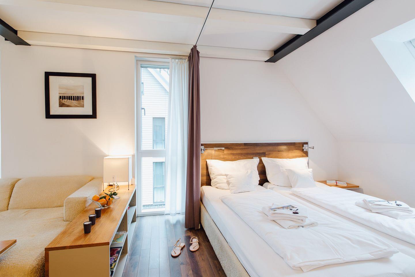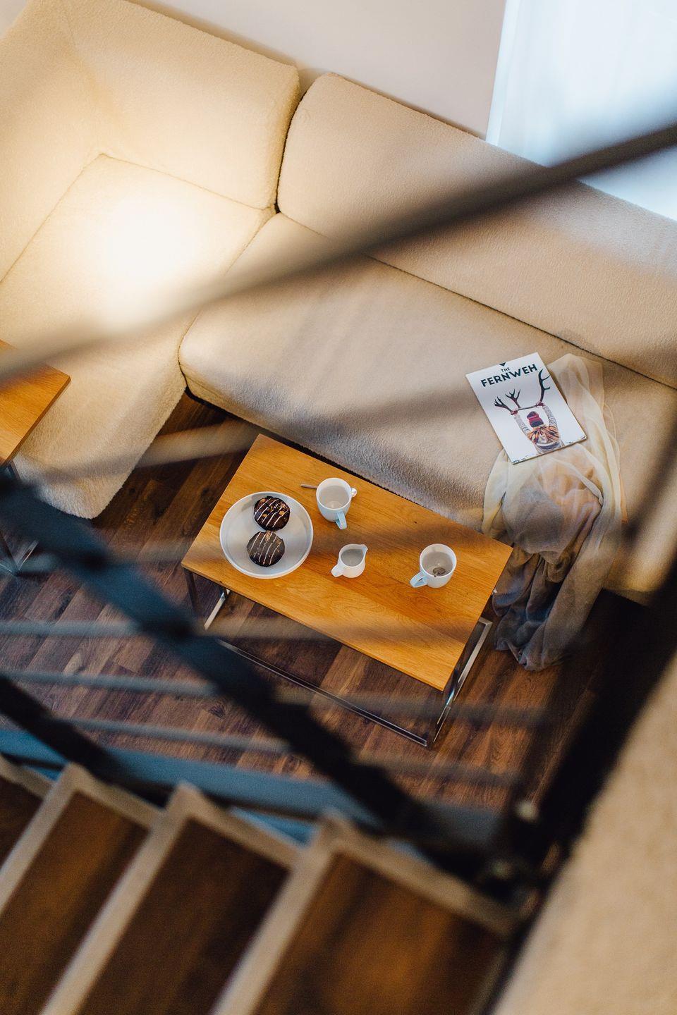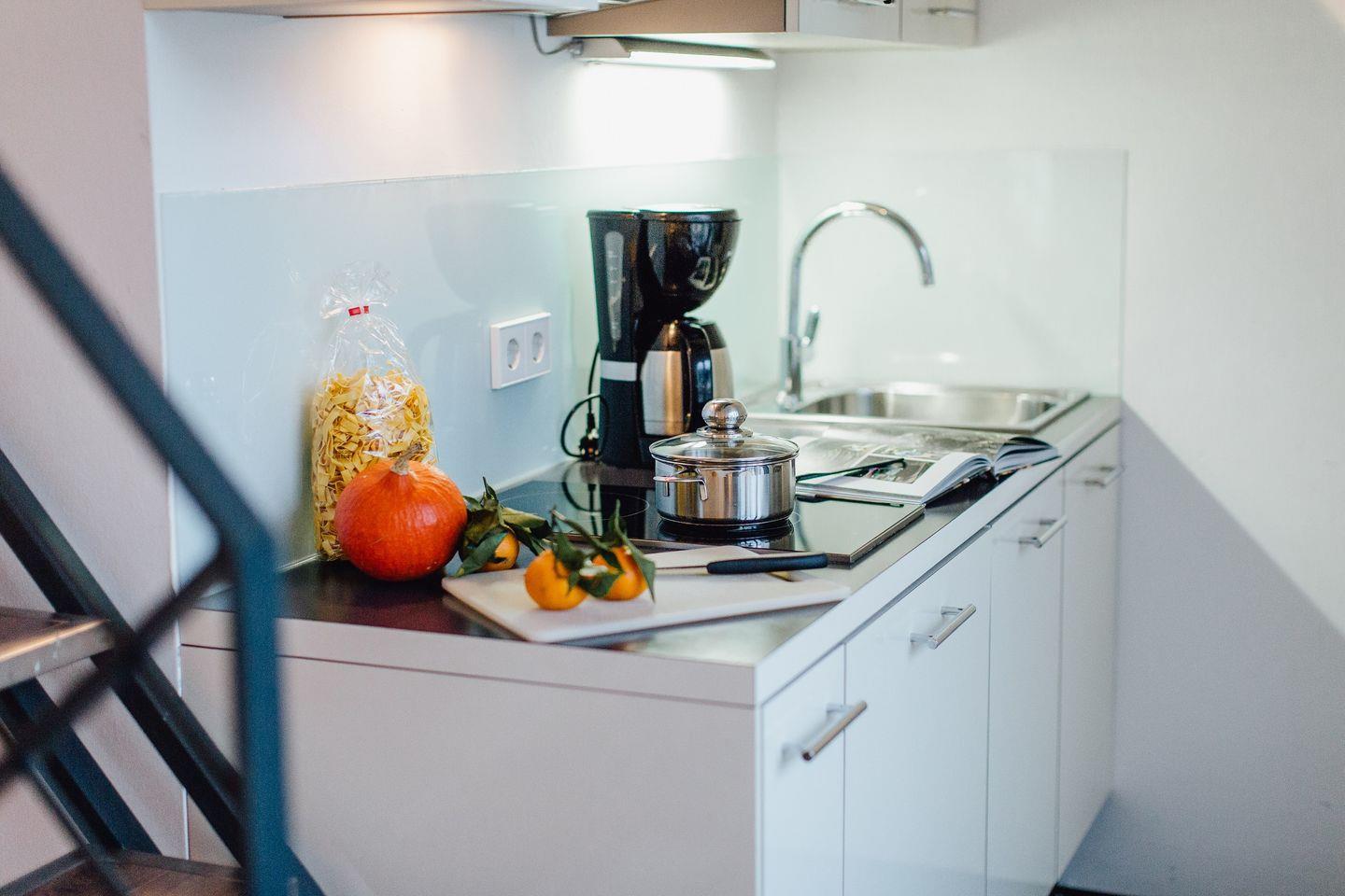 Das wunderschöne Maisonett-Apartment lässt kaum Wünsche offen. In der ersten Etage lädt Sie die Wohnküche nicht nur zu Mahlzeiten ein. Kochen, relaxen, lesen – alles ist möglich. Die komfortabel eingerichtete Wohnküche mit anschließendem Schlafbereich bietet Ihnen eine schlichte Eleganz kombiniert mit einem Hauch von Luxus. Sollten die Tage etwas kühler werden, schaffen Sie mit der Fußbodenheizung schnell eine kuschelige und gemütliche Wärme. Auf dem Süd-Balkon lässt sich der Abend entspannt bei einem Gläschen Wein ausklingen. Das Badezimmer ist mit einer Dusche ausgestattet. Unter dem Dach, im oberen Bereich der Maisonett-Ferienwohnung, befindet sich ein weiteres Bett. Schlafen Sie direkt unter dem Sternenhimmel.