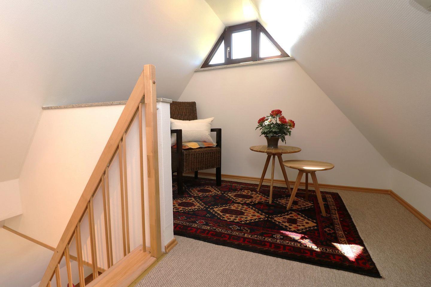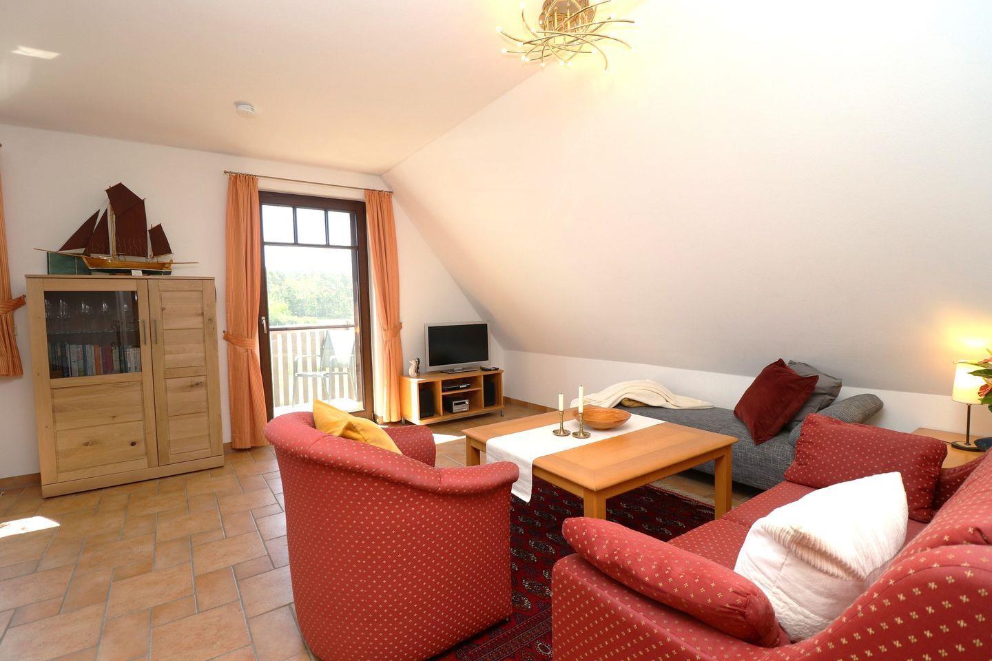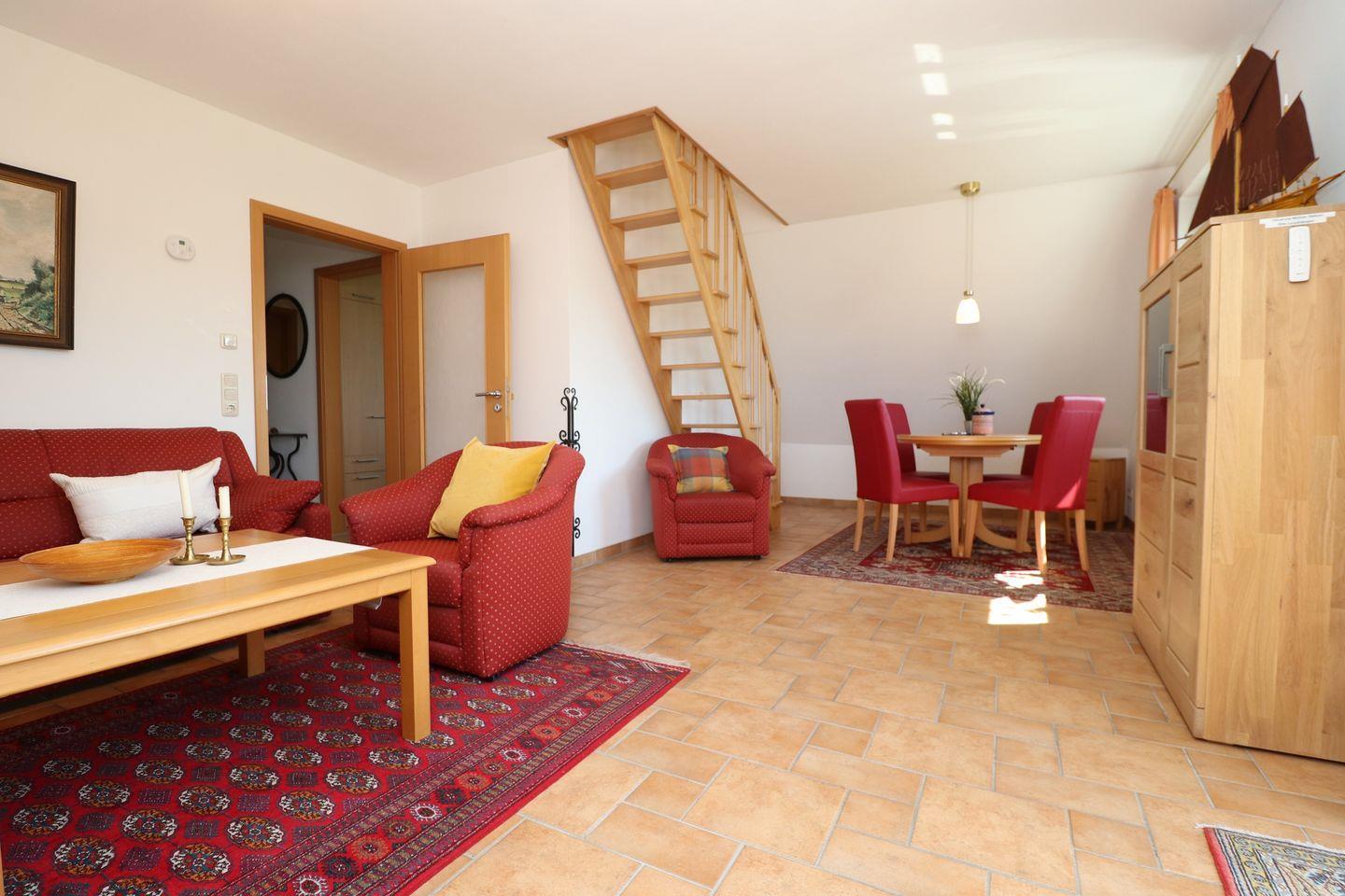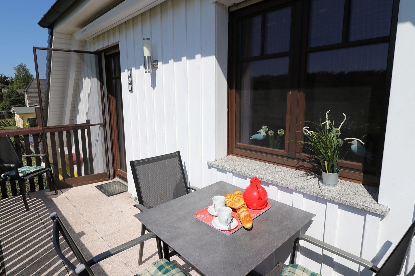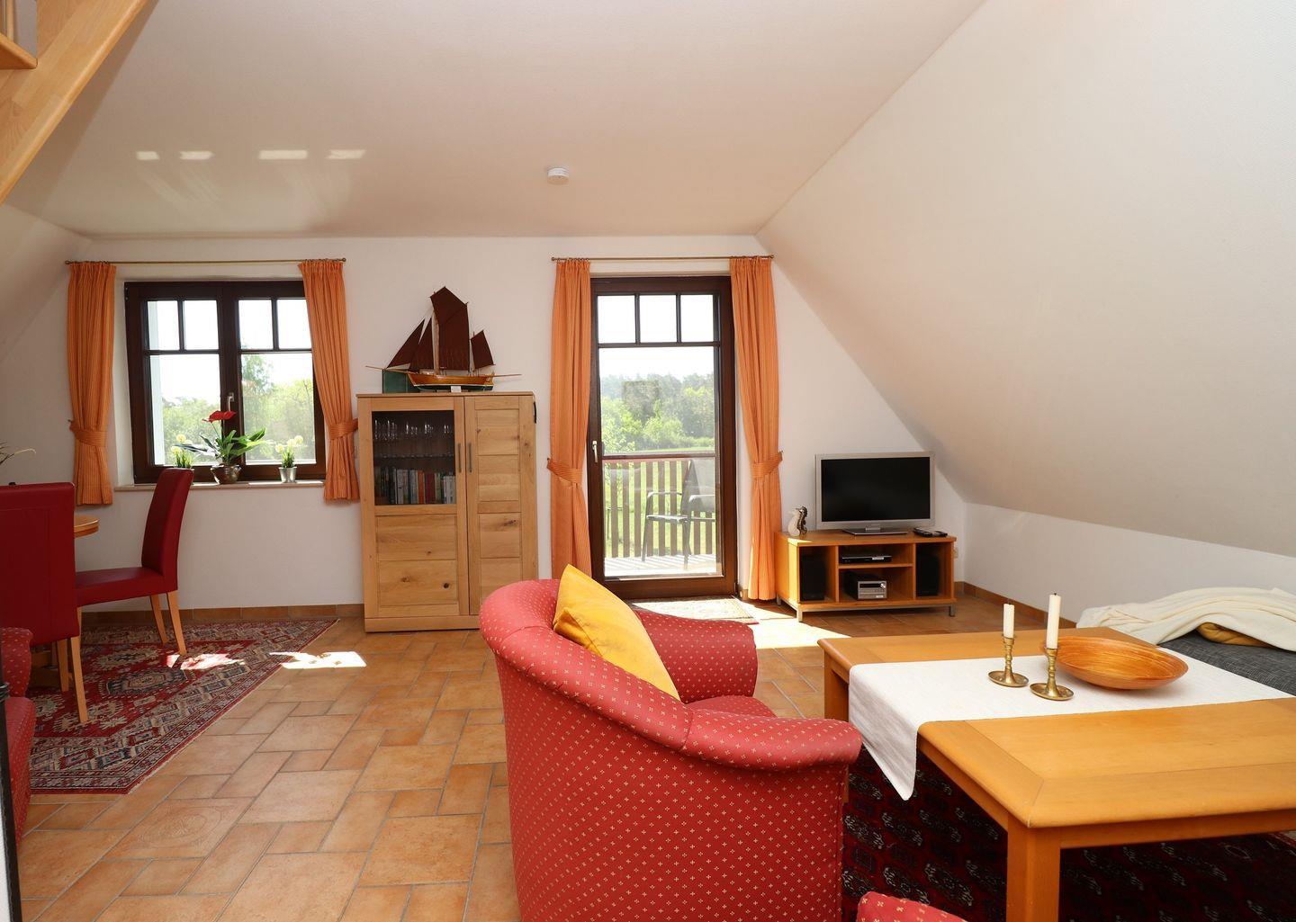 Dieses 55 m² große Maisonette-Appartement im Obergeschoss bietet Platz für bis zu 4 Personen und eignet sich hervorragend für einen entspannten Ostseeurlaub. Mit seiner gemütlichen und funktionalen Ausstattung ist es der ideale Rückzugsort für eine Auszeit. Das geräumige Wohnzimmer lädt zum Verweilen ein und bietet ausreichend Platz zum Entspannen. Die separat gelegene Küche bietet viel Raum, um leckere Mahlzeiten zuzubereiten, und ist komplett ausgestattet. Im Schlafzimmer sorgt ein gemütliches Doppelbett für erholsame Nächte. Das Badezimmer ist mit einer Dusche und einem WC ausgestattet. Eine Waschmaschine steht ebenfalls zur Verfügung, was besonders für längere Aufenthalte praktisch ist. Das zweite Schlafzimmer befindet sich im Dachgeschoss und ist mit zwei Einzelbetten ausgestattet – ideal für Kinder oder Freunde. Der nach Süden ausgerichtete Balkon eröffnet einen herrlichen Blick über die umliegende Landschaft und lädt zum Entspannen ein. Besonders in den lauen Sommerabenden ist er der perfekte Ort, um die frische Luft zu genießen und den Tag ausklingen zu lassen. Haustiere sind in diesem Appartement nicht gestattet, und das Rauchen ist ebenfalls nicht erlaubt. WLAN steht Ihnen zur Verfügung, damit Sie jederzeit mit Ihren Lieben in Kontakt bleiben können. Dieses Appartement bietet die perfekte Kombination aus Komfort, Ruhe und Natur – der ideale Ort für einen erholsamen Urlaub an der Ostsee.