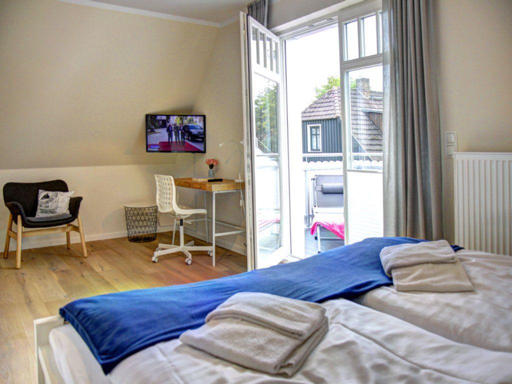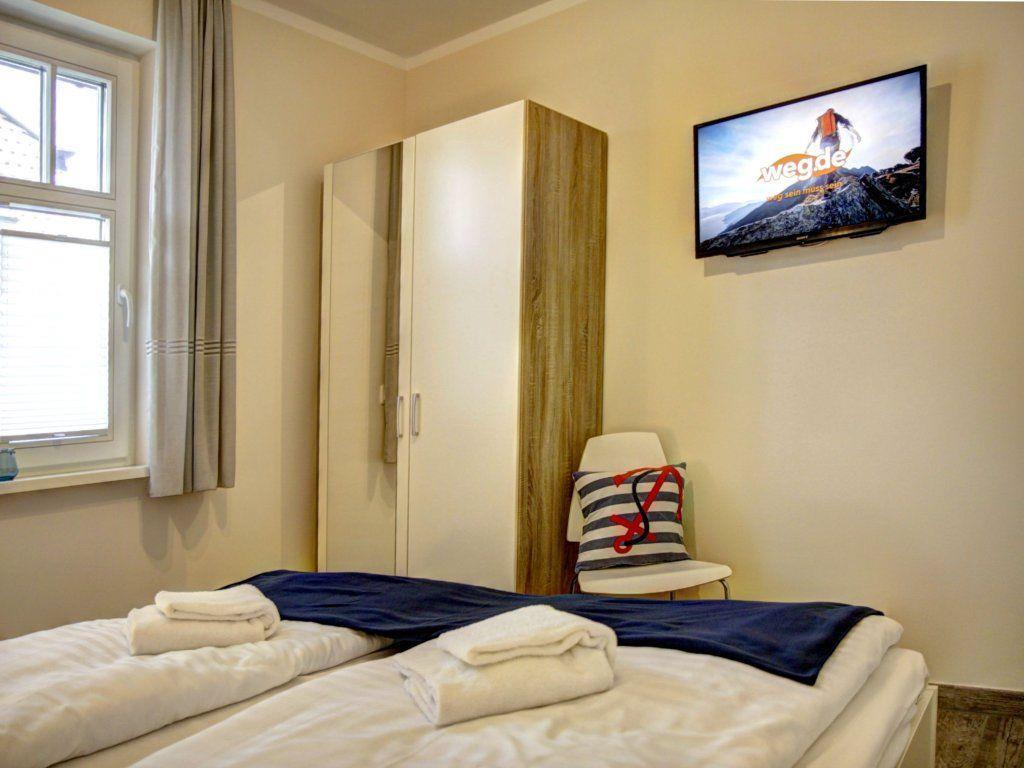 1 Schlafzimmer mit 2 Einzelbetten (0,90x2,00m), verstellbare Lattenroste, TV