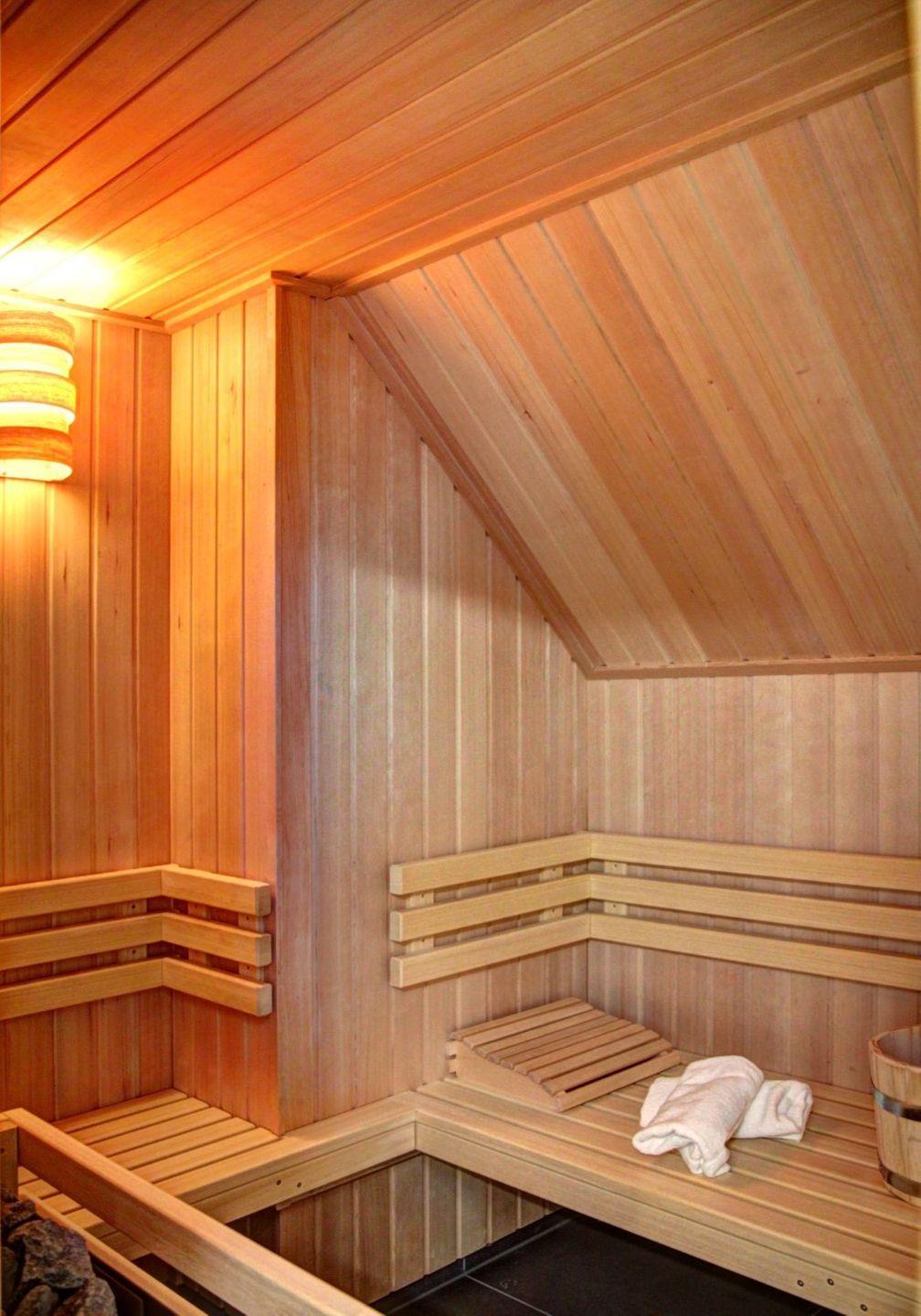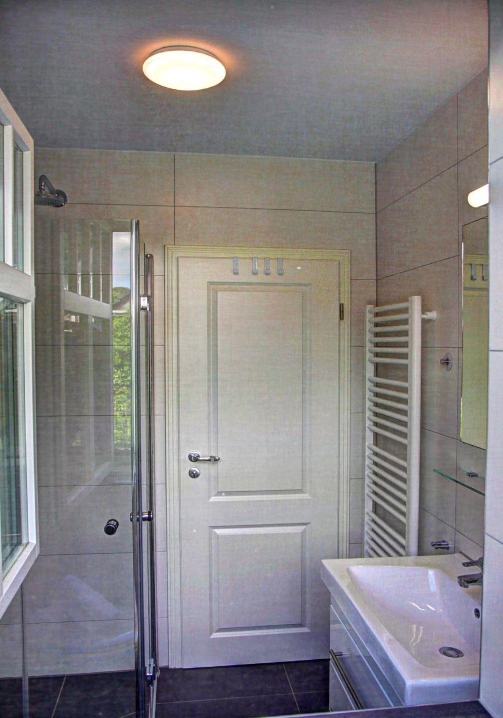 Tageslichtbad mit ebenerdiger Dusche, anliegender Sauna