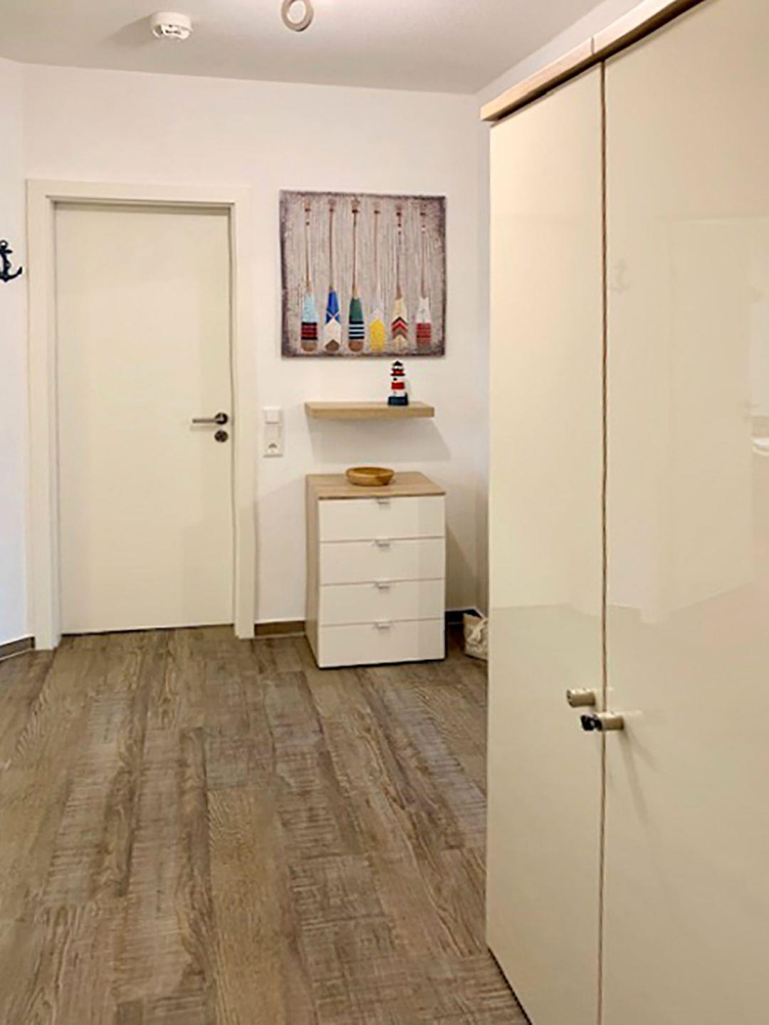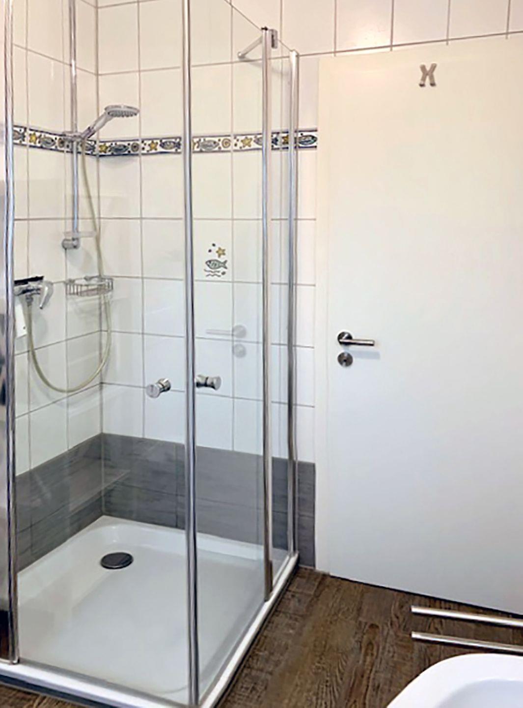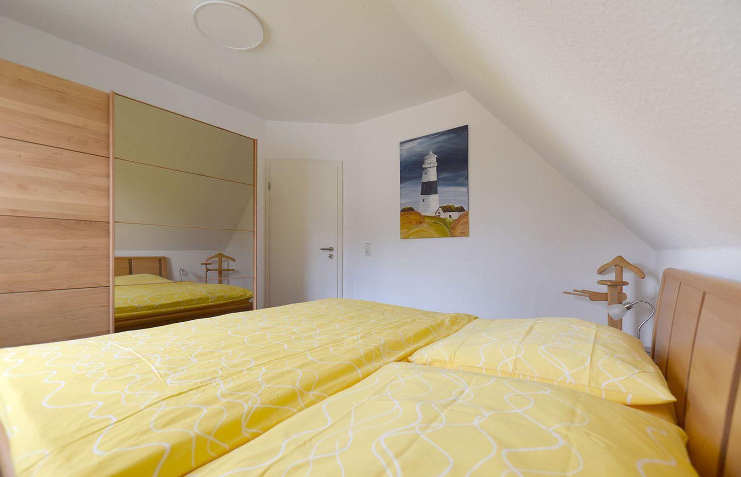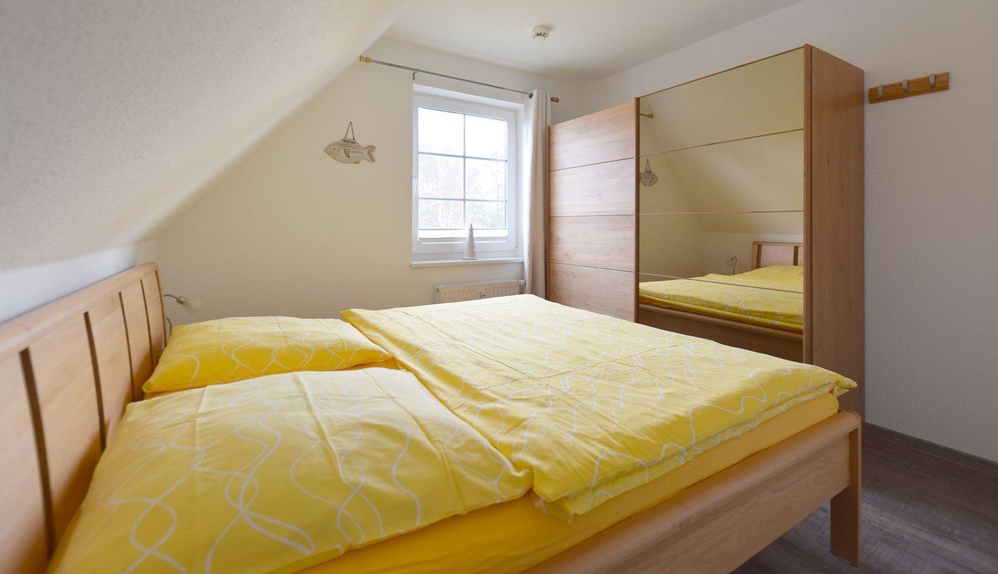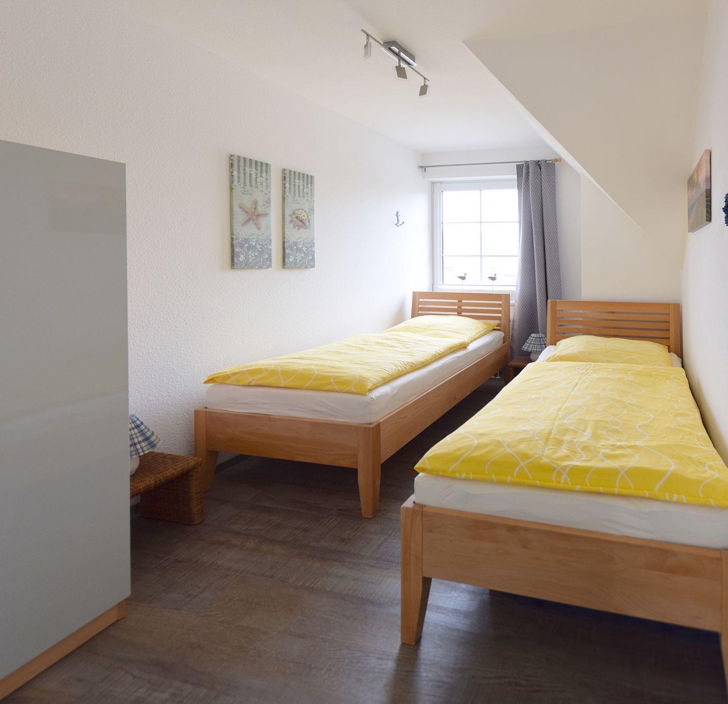 Ferienwohnung bis 4 Personen | ca. 63 m² Wohnfläche | OG Wohnbereich mit Einbauküche, Bad, 2 Schlafzimmer | Süd-Balkon | 1 Parkplatz | Wohnbereich Esstisch, Sitzgarnitur, Radio mit CD/DVD-Player, TV SAT/Kabel | Einbauküche Backofen, Geschirrspüler, Herd, Kaffeemaschine, Kühlschrank mit Gefrierfach, Mikrowelle, Toaster, Wasserkocher | Bad Dusche, Waschmaschine, WC | 1 Schlafzimmer mit einem Doppelbett (180 x 200 cm) | 1 Schlafzimmer mit zwei Einzelbetten (90 x 200 cm) I Kinderhochstuhl | Gemeinschaftliche Nutzung von Fahrradschuppen, WLAN