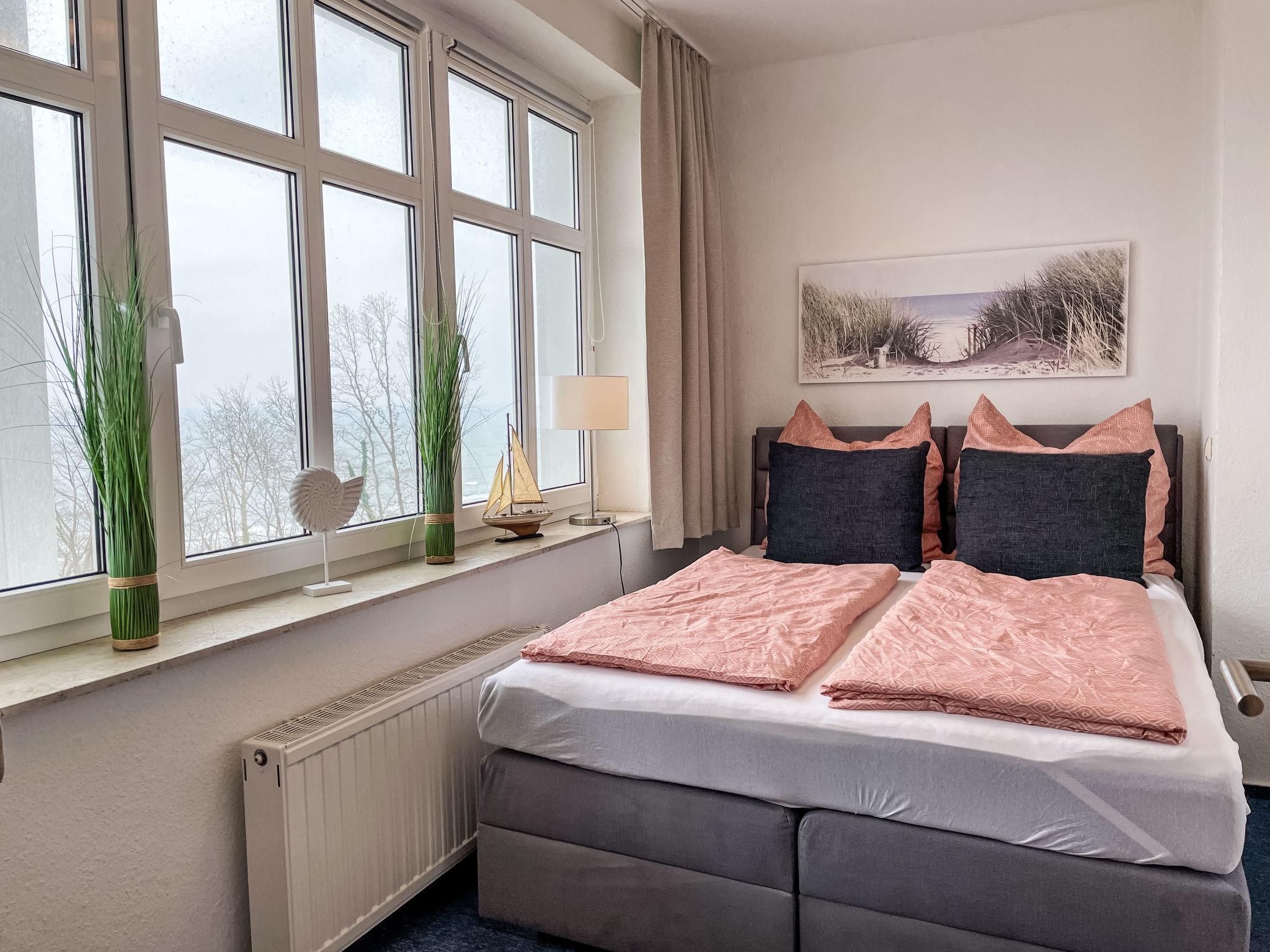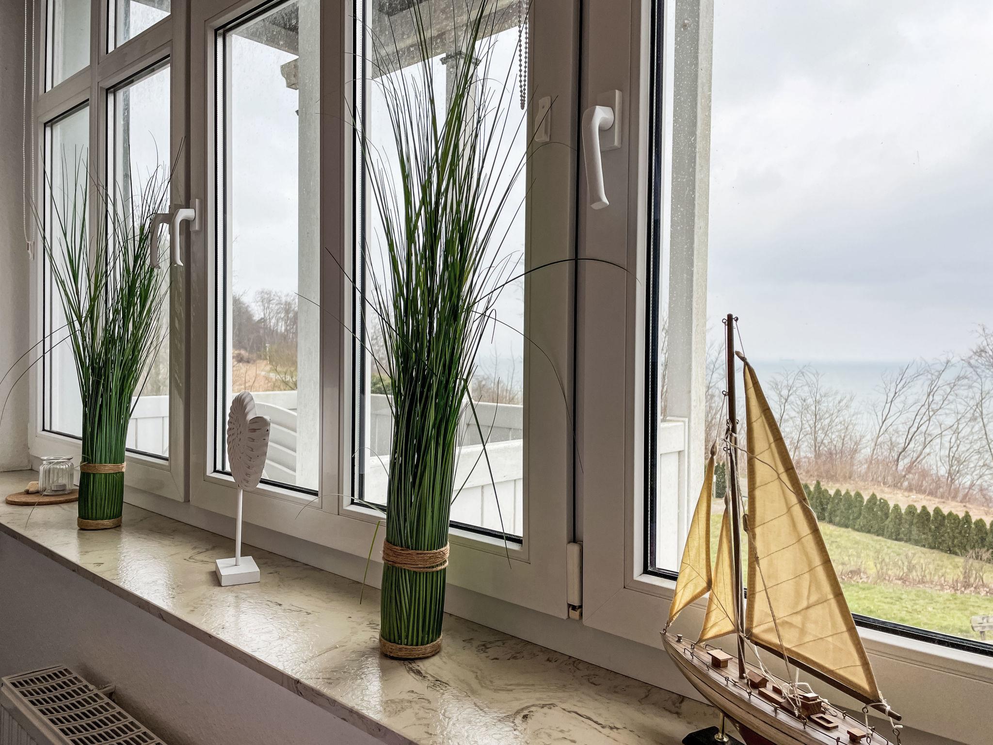 "Ostseeblick", 3-room apartment 60 m2 on 2nd floor. Beautiful and cosy furnishings: living/dining room with dining table and satellite TV (flat screen). Exit to the balcony. 1 room with 1 double bed (180 cm, length 200 cm). 1 room with panoramic window with 1 double bed (2 x 80 cm, length 200 cm). Open kitchen (oven, dishwasher, 4 ceramic glass hob hotplates, toaster, kettle, microwave, freezer, electric coffee machine). Shower/WC. Heating. Large balcony, north-east facing position. Balcony furniture. Marvellous panoramic view of the sea. Facilities: hair dryer. Internet (WiFi, free). Parking space n 11 (1 car) at the house. Please note: suitable for families. Non-smokers only. Maximum 2 pets/ dogs allowed. Smoke alarm, fire extinguisher.