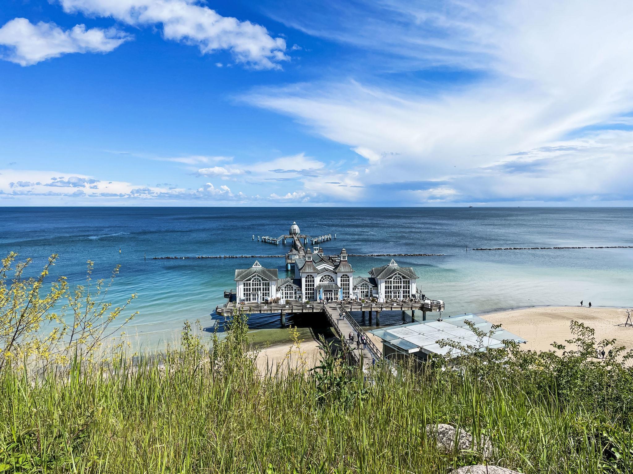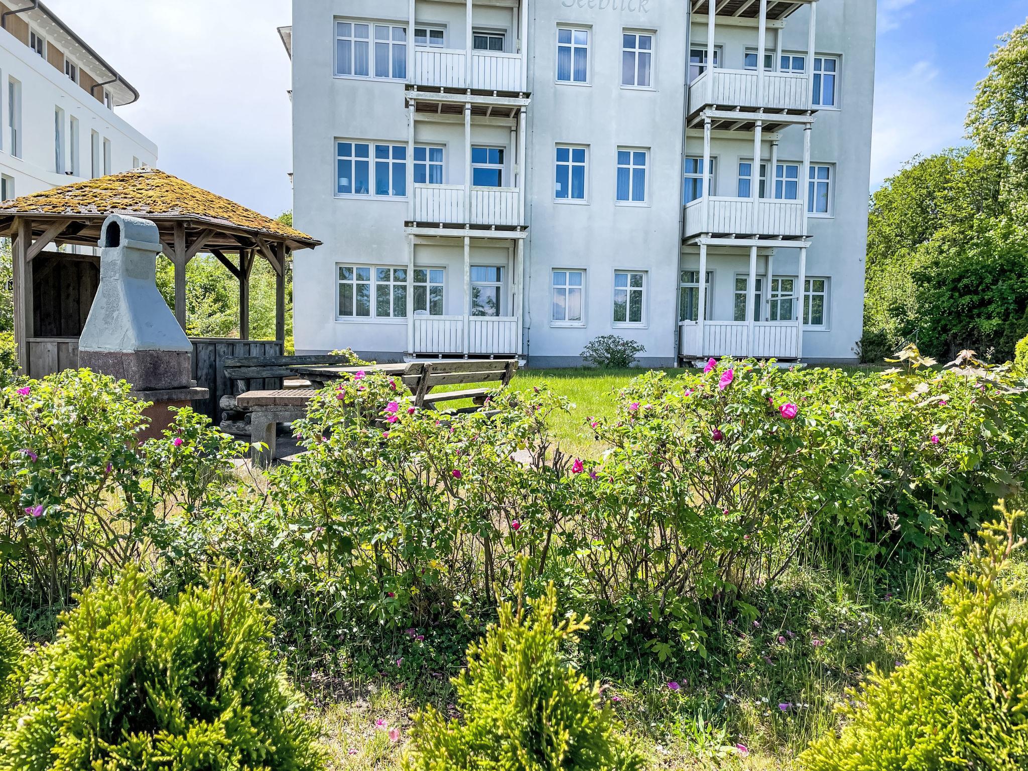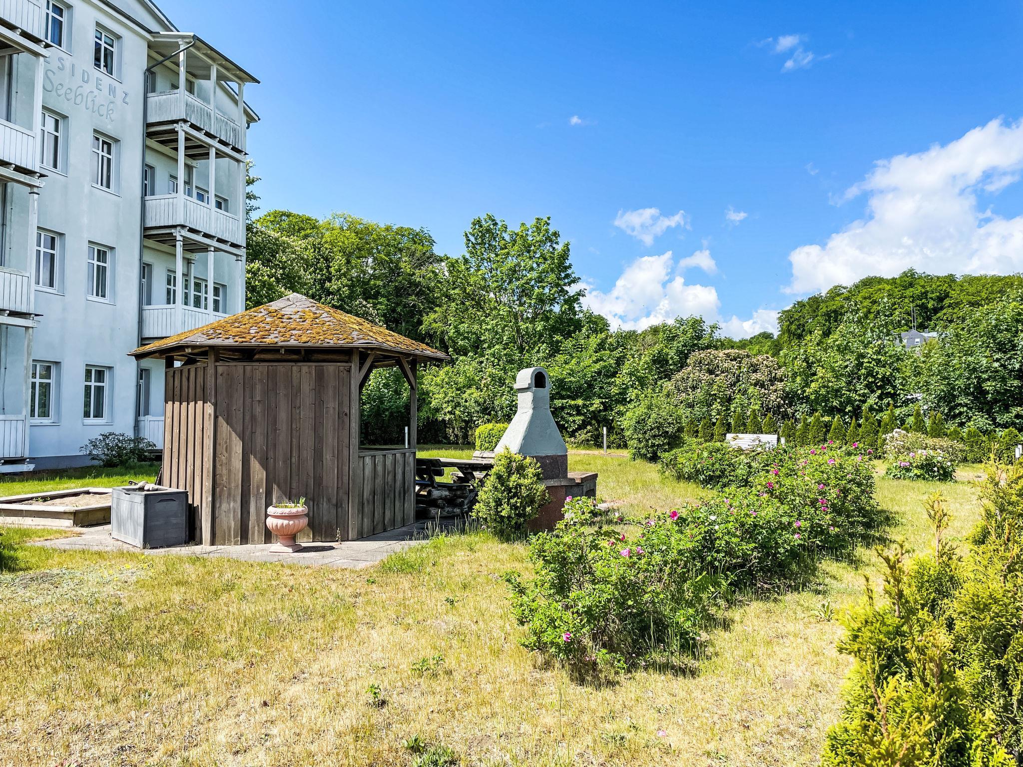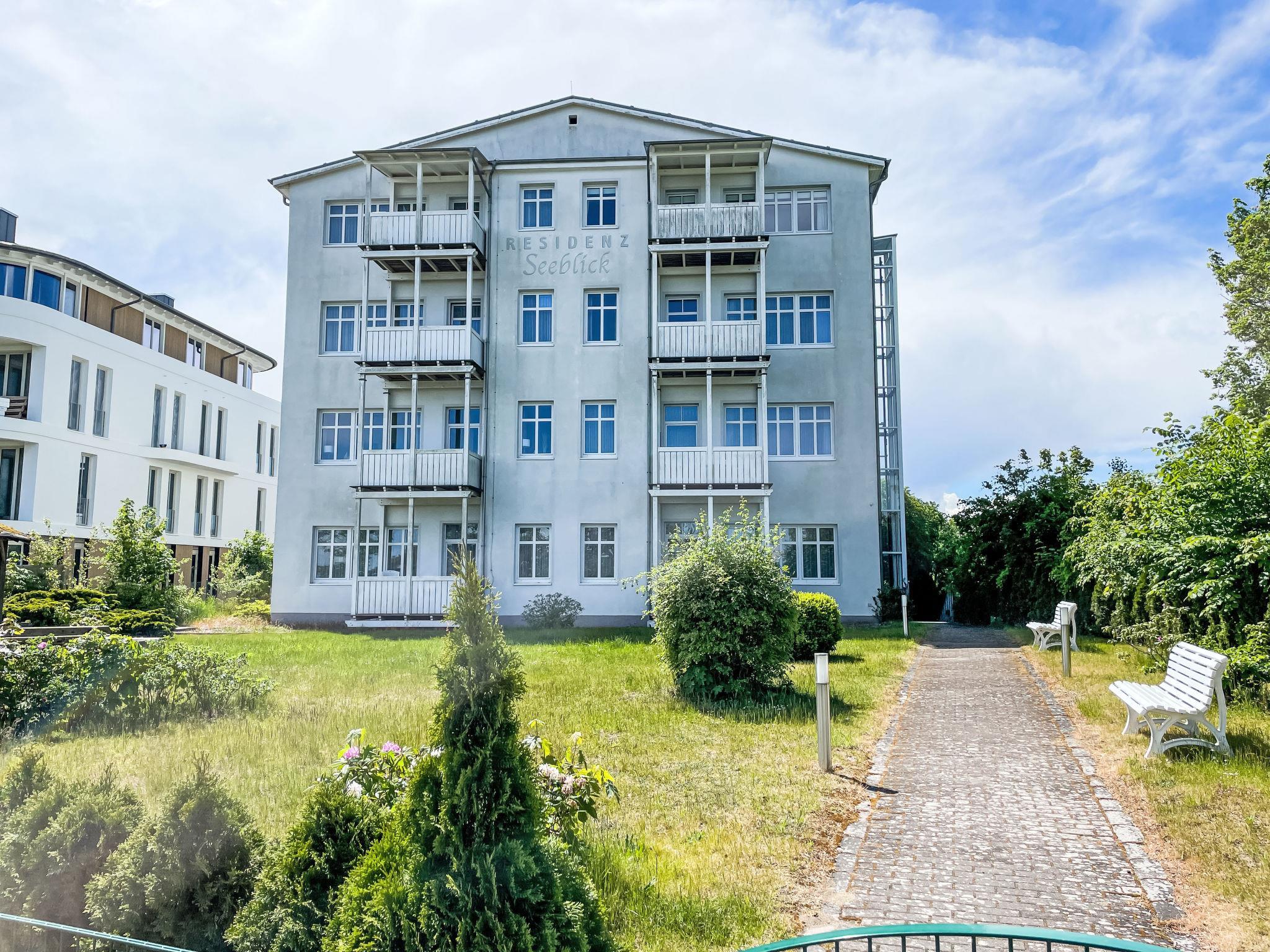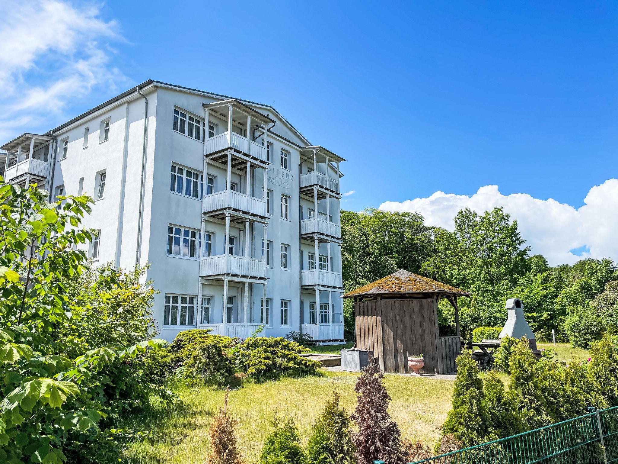 Apartment block, surrounded by trees. 28 apartments in the residence. In the resort 50 m from the centre of Sellin, 6 km from the centre of Göhren, 8 km from the centre of Binz, in an elevated position on a slope, 50 m from the edge of the forest, 30 m from the sea, 150 m from the beach. For shared use: property 2'000 m2, garden 800 m2 with lawn. Barbecue house. In the house: sauna (extra). Relaxation room, lift, storage room for bicycles, central heating system, washing machine (extra) (for shared use). Shop 300 m, supermarket 1.3 km, shopping centre 2.3 km, restaurant, bakery, café 300 m, bicycle rental 900 m, bus stop "Flix Bus Sellin" 1.1 km, railway station "Sellin (Ost)" 1.7 km, sandy beach "Seebrücke" 150 m, indoor swimming pool 1.3 km. Sports harbour 2 km, golf course (18 hole) 30 km, minigolf 1.4 km, walking paths from the house 10 m. Nearby attractions: Königsstuhl 38 km, Kap Arkona 58 km, Seebrücke Sellin 100 m.