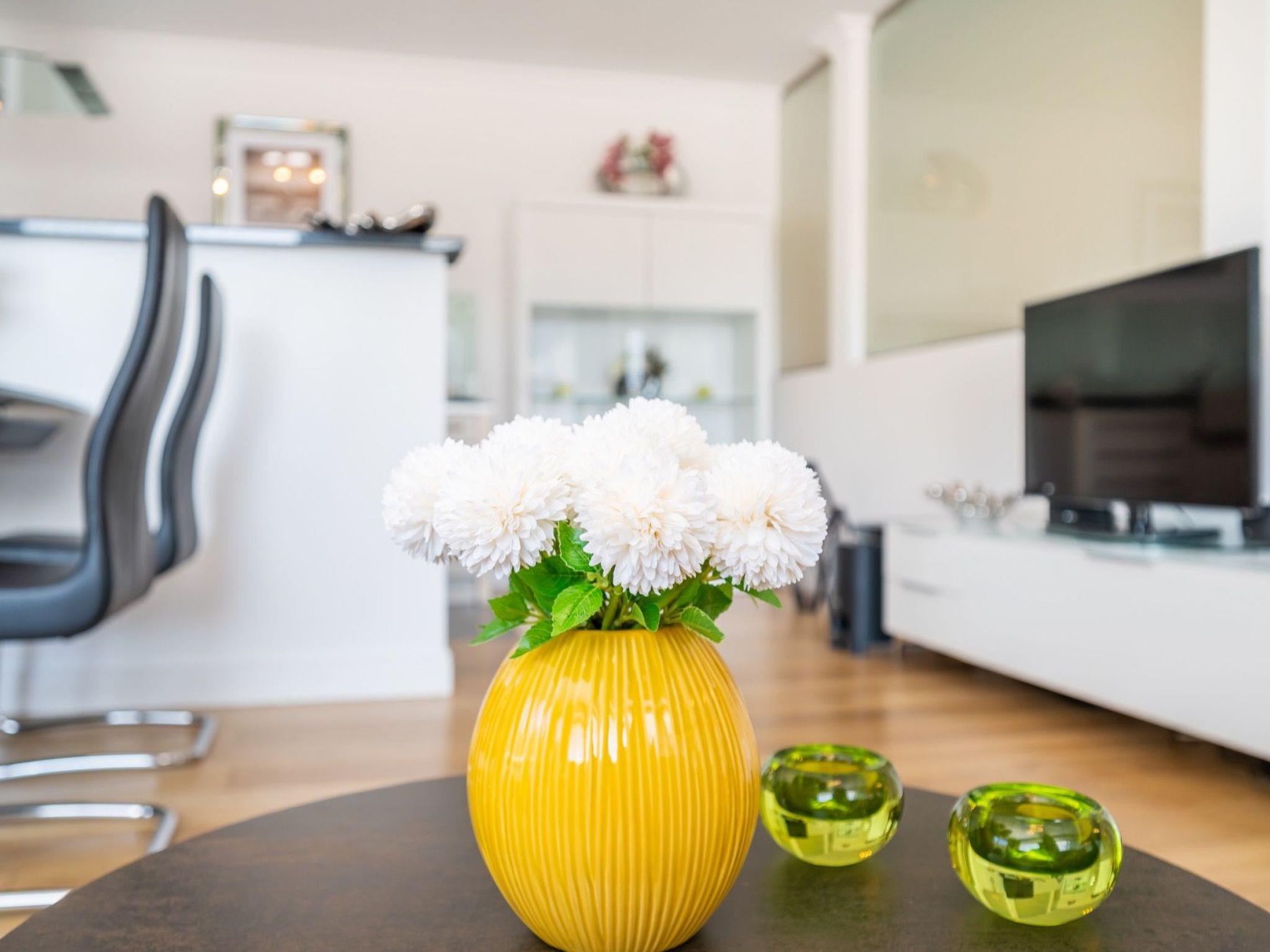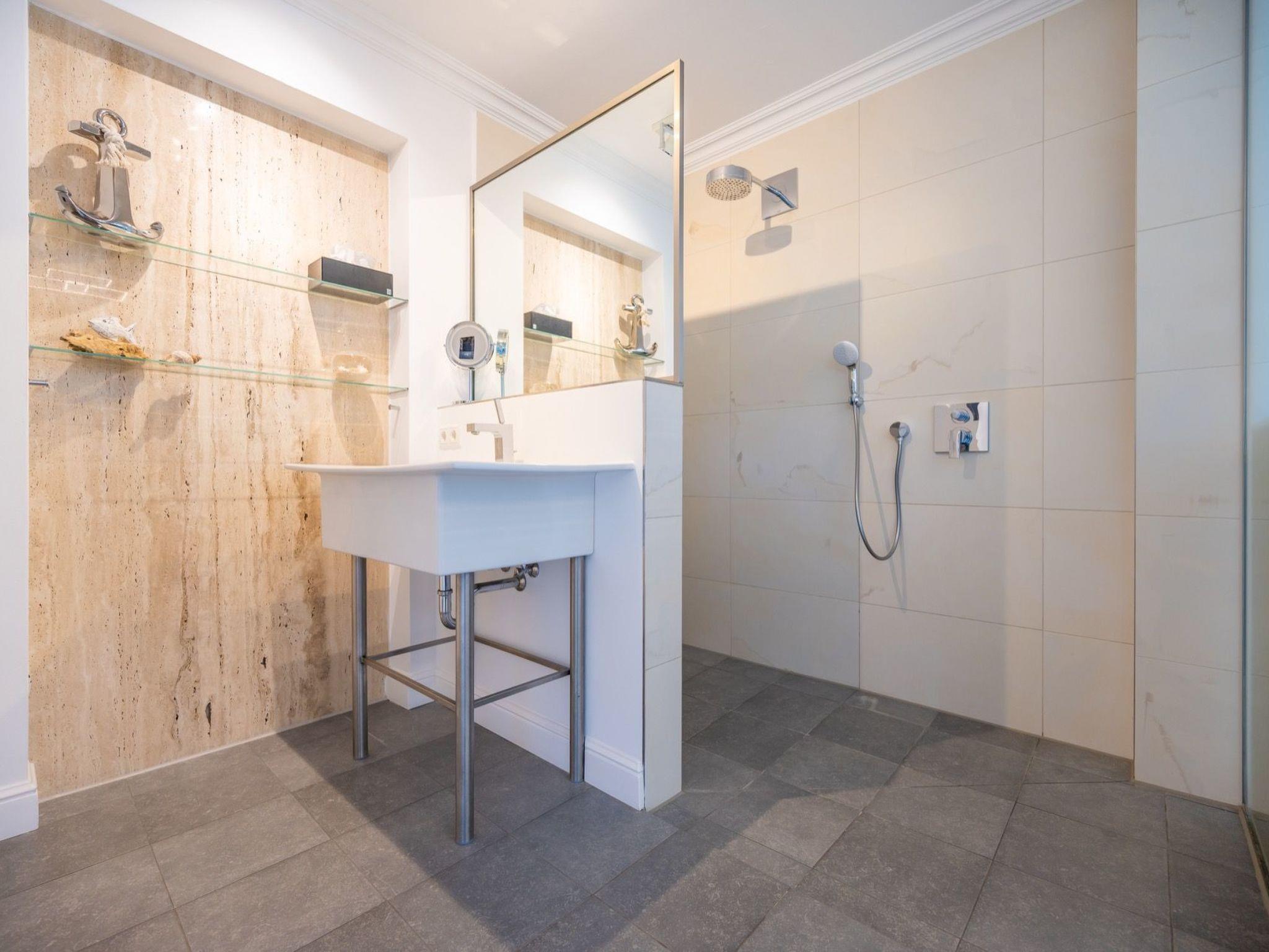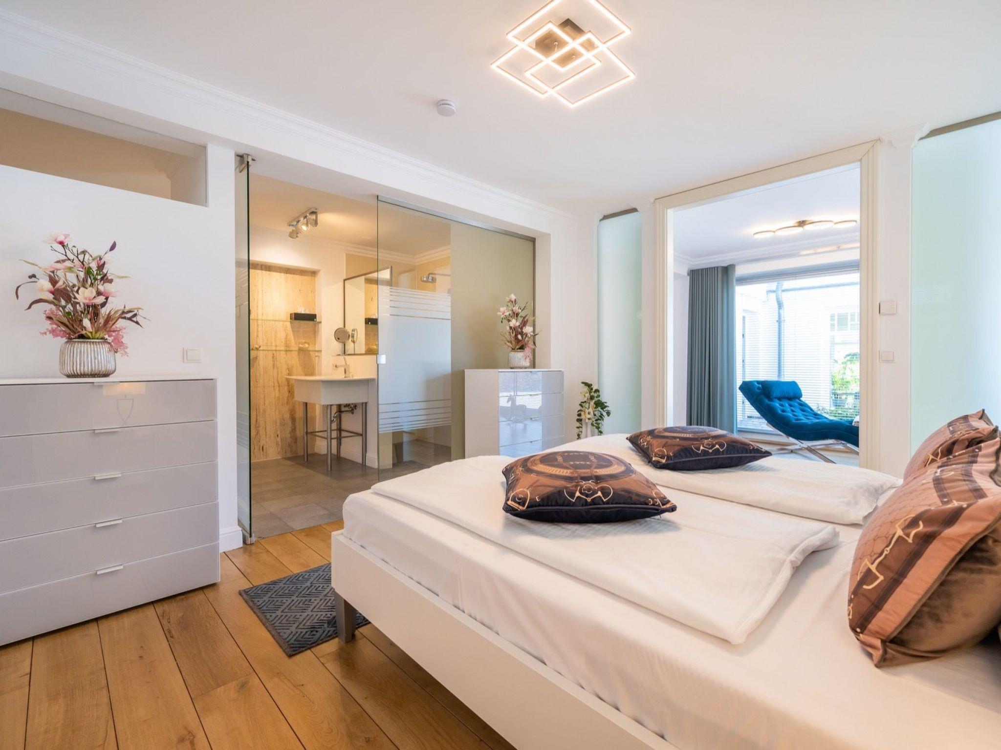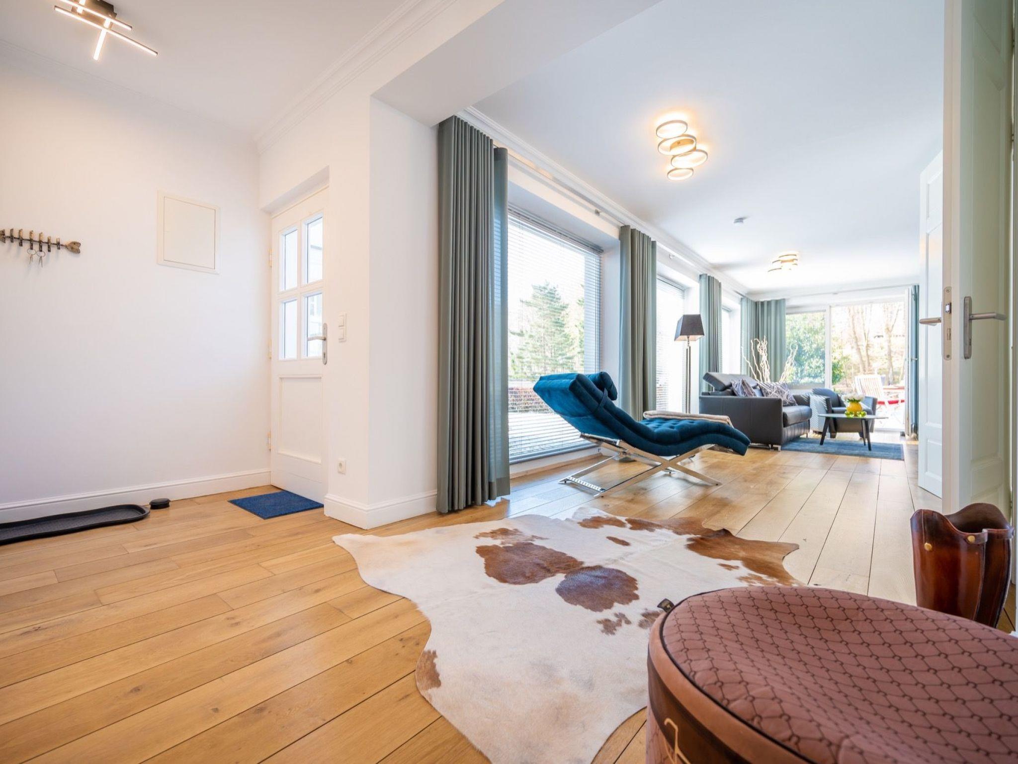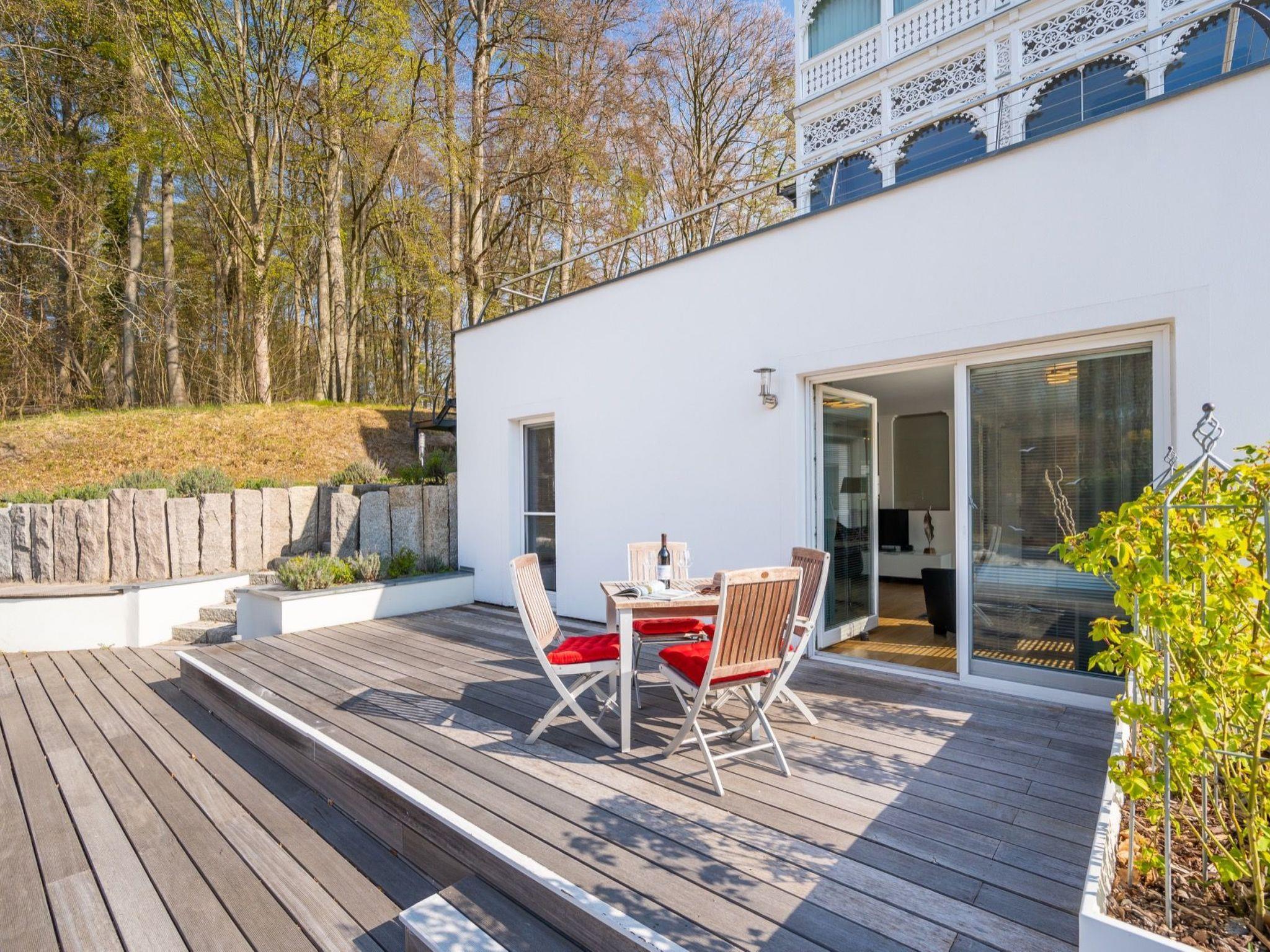 Outside, the wind-protected south-facing terrace invites you to relax. There is also a communal terrace with an outdoor pool and a wellness area. The high shore with a view of the Baltic Sea and the famous pier begins right outside the door. To the left is the mystical Granitz forest area - ideal for walks and little adventures with children. Shops, restaurants and leisure facilities are just a few minutes away. The fresh sea breeze makes your stay an all-round sensual experience.