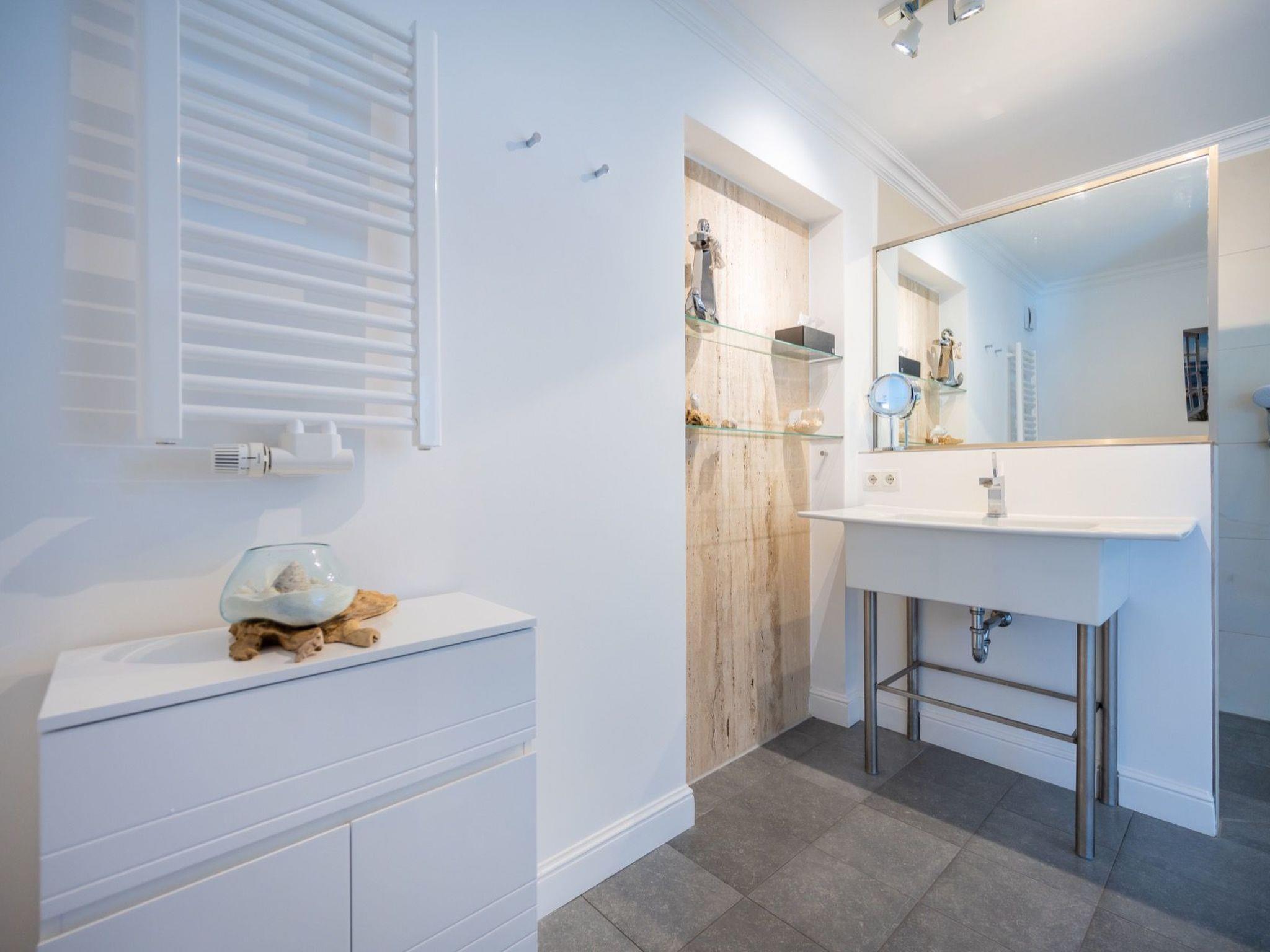 The stylishly redesigned "Meeresbrise" flat is worth a visit at any time of year. You can expect a spacious, light-flooded living area with an open-plan kitchen and floor-to-ceiling south and east-facing windows - ideal for enjoying the sun and sea views. In the bedroom with cosy double bed and adjoining en-suite bathroom, you will find peace and comfort. A sofa bed (1.40 m wide) in the living area offers additional space - perfect for one adult or up to two children.