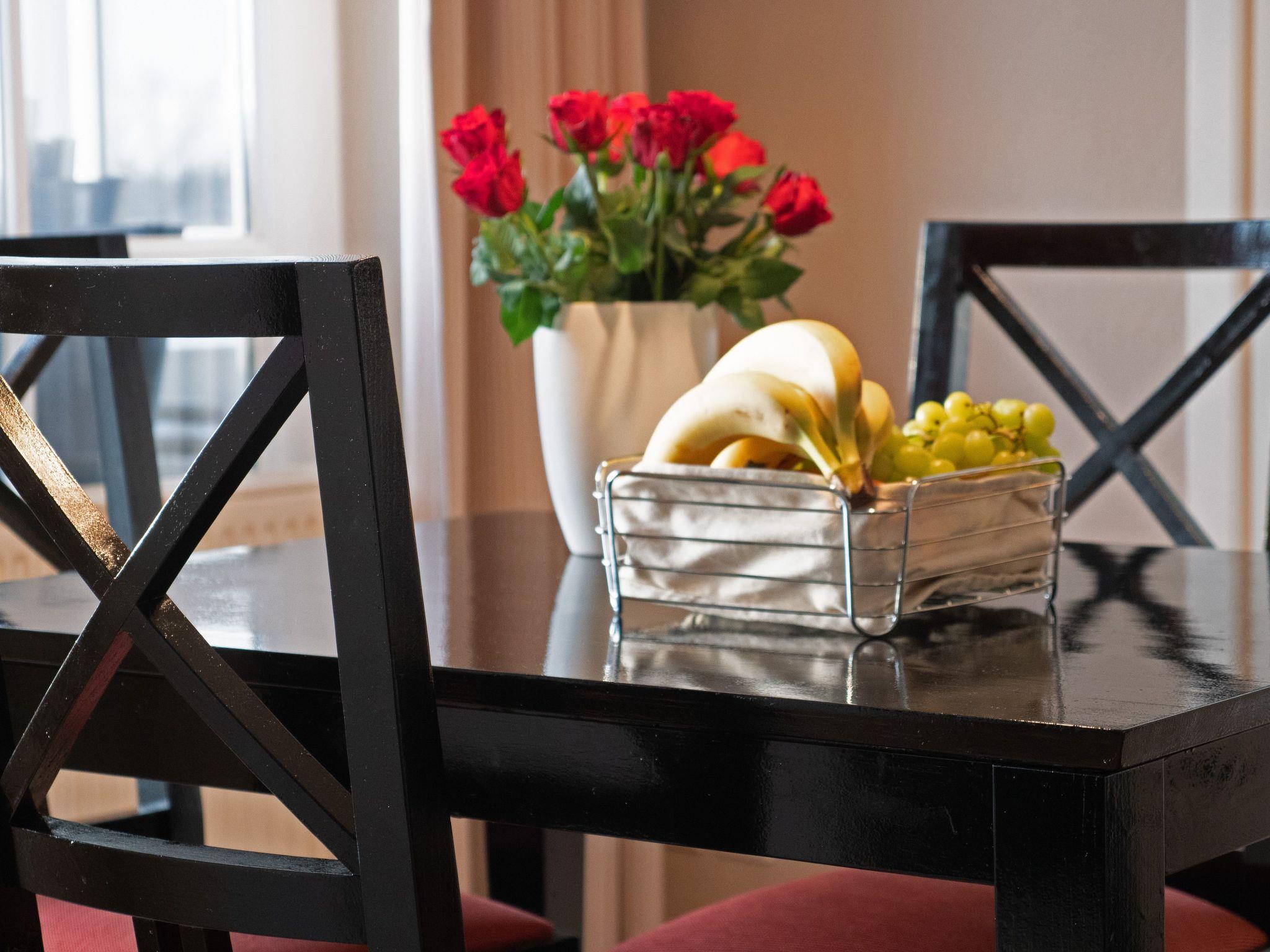 Modern eat-in kitchen, well equipped with dishwasher, microwave, oven and coffee machine.