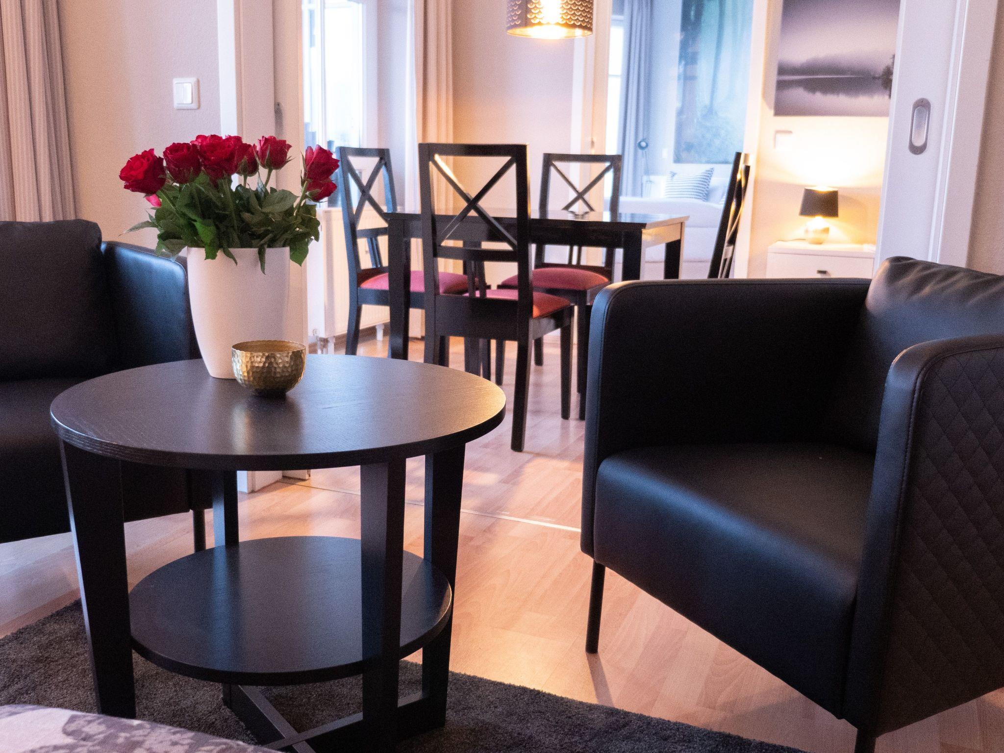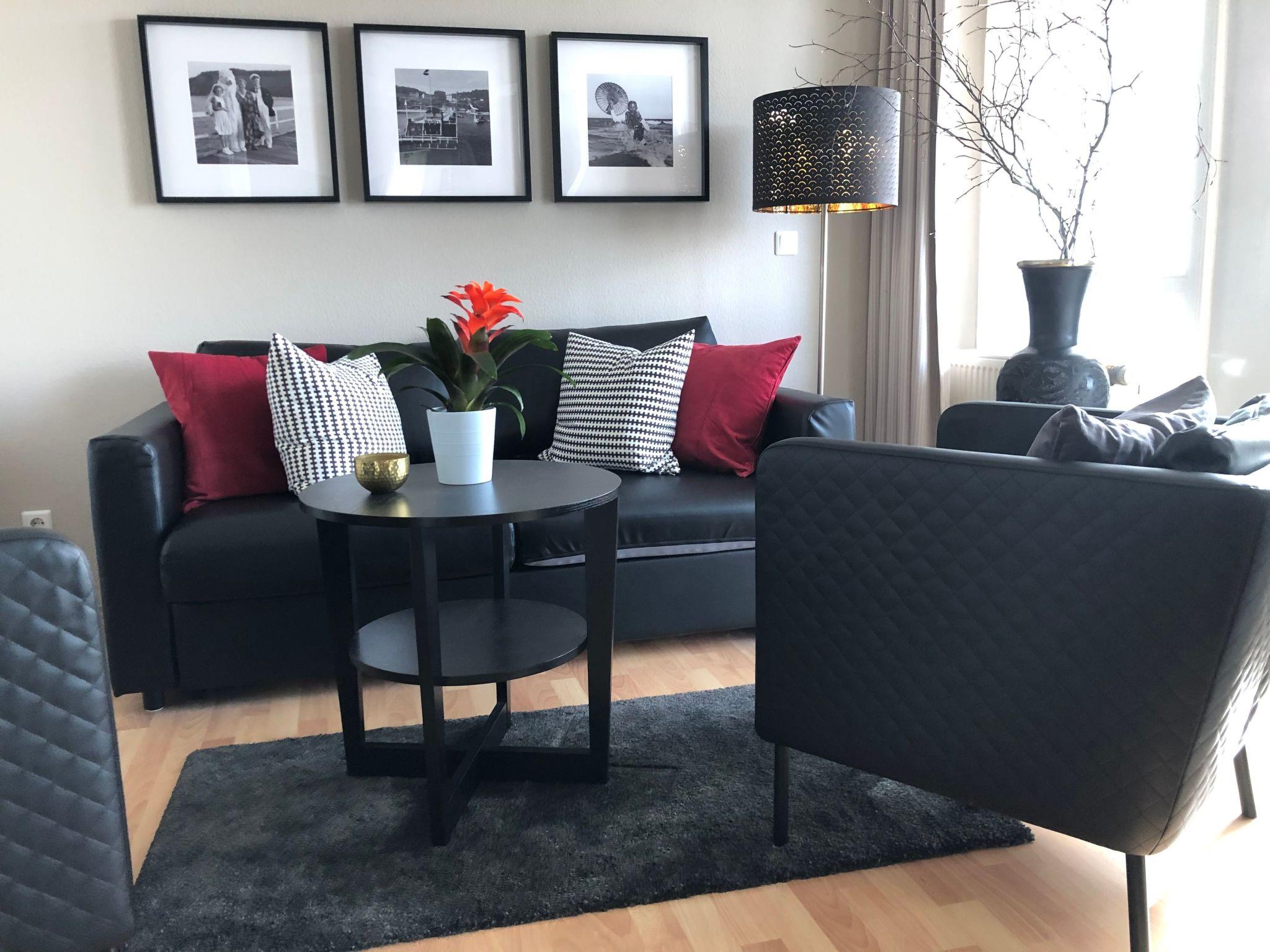 Flat with large bedroom, sofa bed in the living room and separate eat-in kitchen