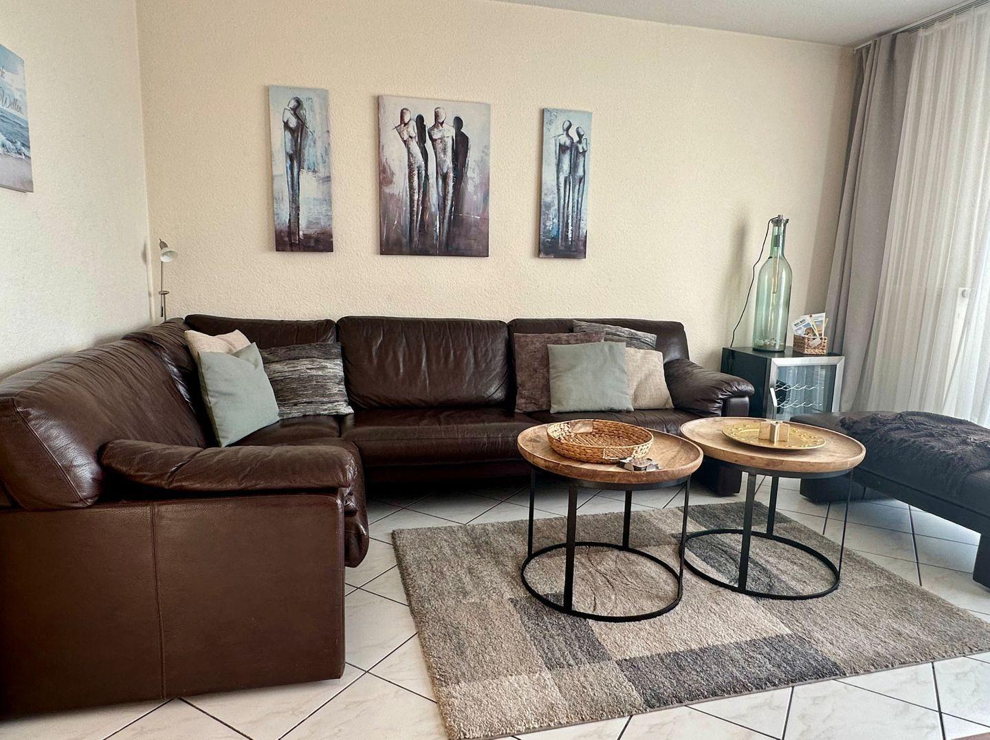 WOHNEN // Wohnzimmer mit bequemer Couch, Fachbild-TV, W-LAN, Musikanlage, separater Kühlschrank, Zugang zur Terrasse ++