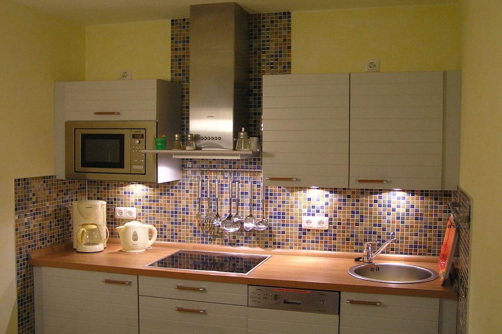 Lejlighed 14 i det gamle vandværk har et fuldt udstyret tekøkken med mikrobølgeovn, keramisk kogeplade, køleskab, opvaskemaskine, kaffemaskine, elkedel, æggekoger, blender og brødrister. Opholdsstuen er smagfuldt møbleret og har Wi-Fi, sofa, to kurvestole, LCD-tv, dvd-afspiller og stereoanlæg. Opholdsstuen åbner ud til en balkon med fire stole, et bord og en parasol.