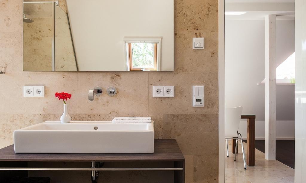 Es stehen eine Waschmaschine (je Waschgang 4 bis 6 x 0,50 EURO) und ein Trockner (je Trocknung 4 x 0,50 EURO) in einem separaten Gemeinschaftsraum zur Verfügung. Die Eigentümer haben viel Wert und Sorgfalt auf die Auswahl und Verwendung der Einrichtungsgegenstände gelegt. Diese erfüllen dabei auch höchste Ansprüche an Umweltverträglichkeit und Nachhaltigkeit (Green Living).