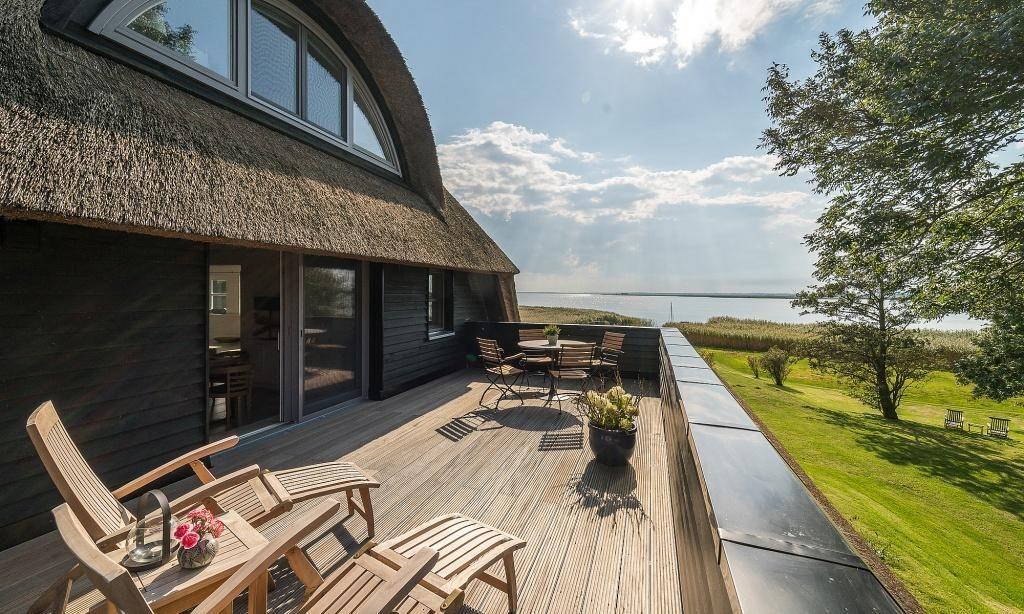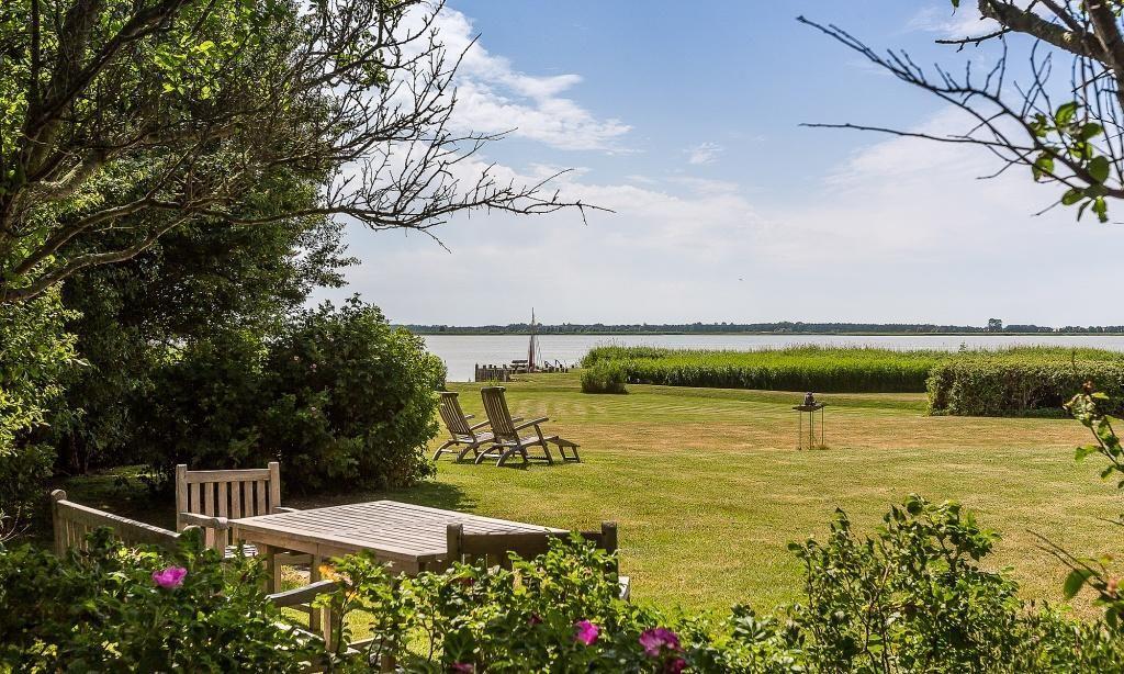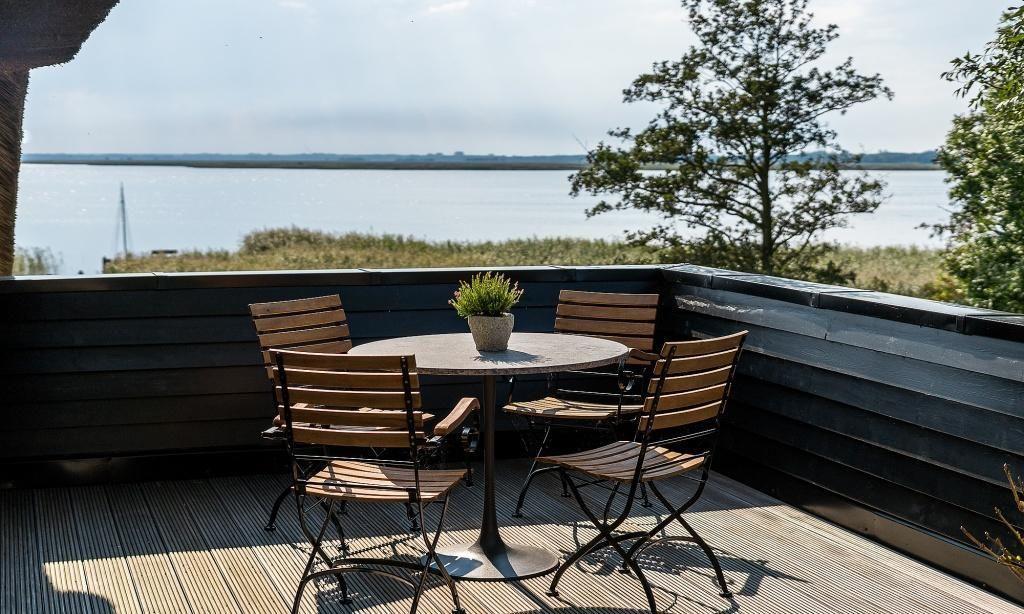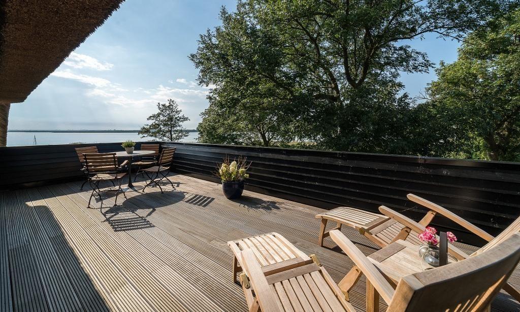 Ein besonderes Highlight ist die großzügige Dachterrasse, von der du einen weiten Blick über das 8000 Quadratmeter große Wassergrundstück und auf vorbeiziehende Zeesboote genießen kannst. Diese Aussicht und Lage ist absolut einmalig auf dem Fischland und verspricht Erholung und ein ganz besonderes Urlaubs-Feeling. In dem Nebengebäude steht dir eine kleine Wellnessoase mit Sauna*, Dusche, Fußbad, WC, Ruheraum und Fitnessgeräte zur Verfügung. Zudem bietet dir das Naturgrundstück eine Liegewiese, einen Grillplatz und verschiedene Sitzgelegenheiten mit einem atemberaubenden Blick auf das Wasser. Abgerundet wird dieses Traumensemble mit einem eigenen kleinen Hafen samt Ruderboot, mit dem du gern über den Bodden paddeln darfst. Dir stehen ein PKW-Stellplatz sowie Abstellmöglichkeiten für Fahrräder und Surfbretter zur Verfügung.