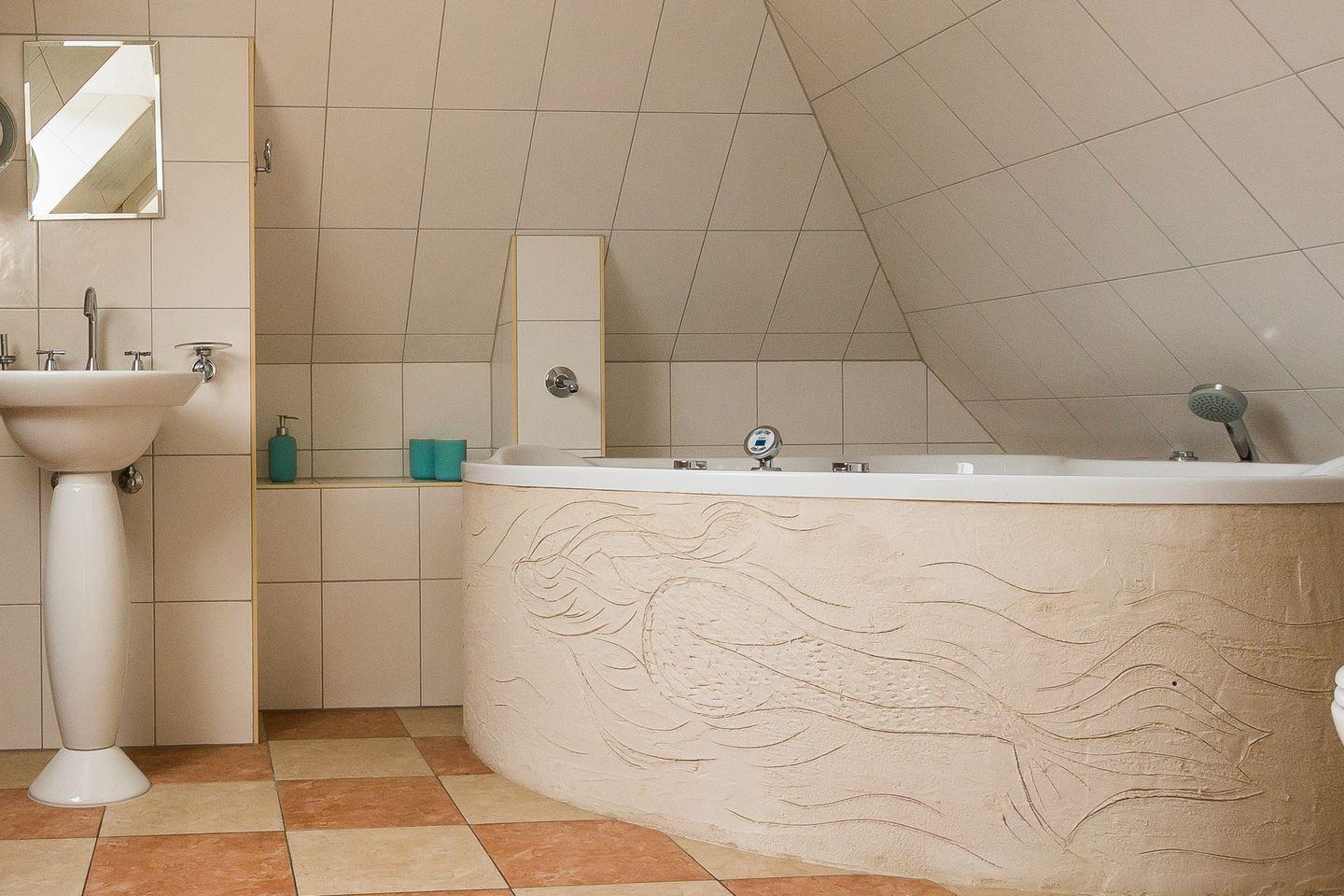 Die niedliche Maisonette-Wohnung befindet sich im ersten und zweiten Stock der Ostseenixe, die insgesamt fünf Ferieneinheiten beherbergt. Im Obergeschoss gelangst du bei Eintritt in die Küche. Freue dich hier auf einen tollen Start in den Tag bei einem sonnigen Frühstück. Über eine Treppe errichst du in den Wohnraum, der mit einer kleinen Sitzecke und TV-Bereich, einem Schreibtisch und einem Lesesessel im Scandi-Style Gemütlichkeit versprüht. Durch Fachwerkbalken vom Wohnraum getrennt, befindet sich der Schlafbereich mit einem Doppelbett und Bullaugenfenster. Ein modernes Bad mit Whirlwanne, Dusche/WC runden die süße Ferienwohnung für zwei perfekt ab.