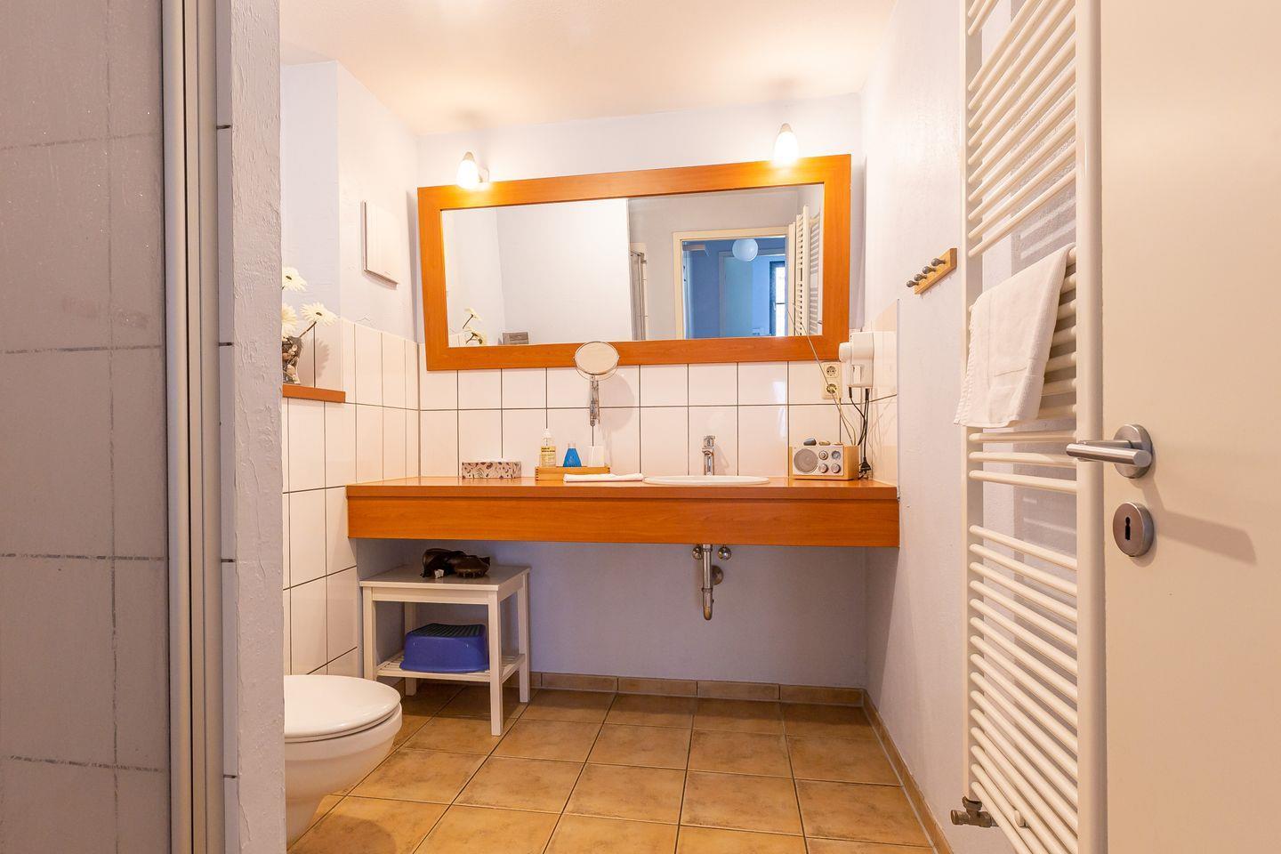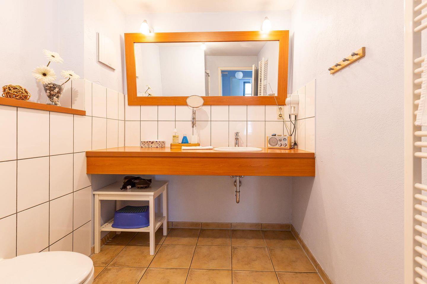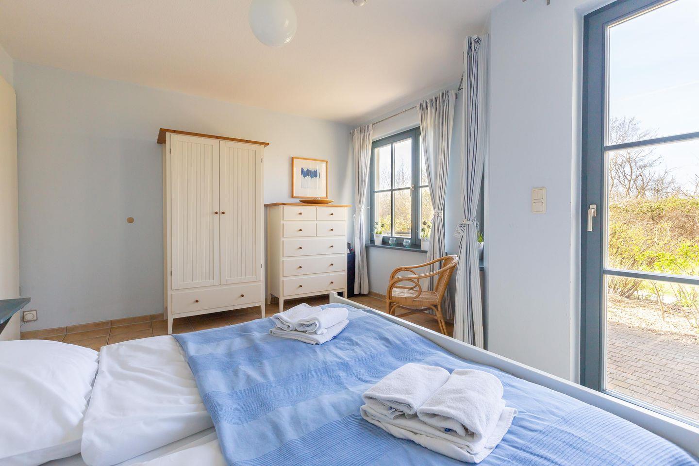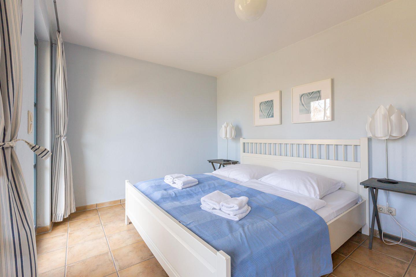 Willkommen in deinem Ostseeurlaub. In der gemütlichen Ferienwohnung wurde das Interieur und die Farben liebevoll im Seaside-Stil gestaltet, passend zum Meer und der strandnahen Umgebung. Das Herzstück der Wohnung ist der offene gestalte Wohn- und Küchenraum. Die Küchenzeile ist vollwertig ausgestattet, so dass du den fangfrischen Fisch nicht nur im Restaurant, sondern auch selbst zubereitet genießen kannst. Und nach einem ausgiebigen Strandtag stehen Sofa und Kamin zum Klönen bereit. Vom Flur gehen beide Schlafzimmer der Wohnung ab - eins mit Doppelbett und eins mit zwei getrennten Betten. Dank je einem Kleiderschrank und einer Kommode bieten die Schlafzimmer genügend Stauraum für deine Sachen. Das großzügige Badezimmer mit Dusche, WC, Fön und Handtuchhalter runden den Wohnkomfort für bis zu vier Personen rundum ab.