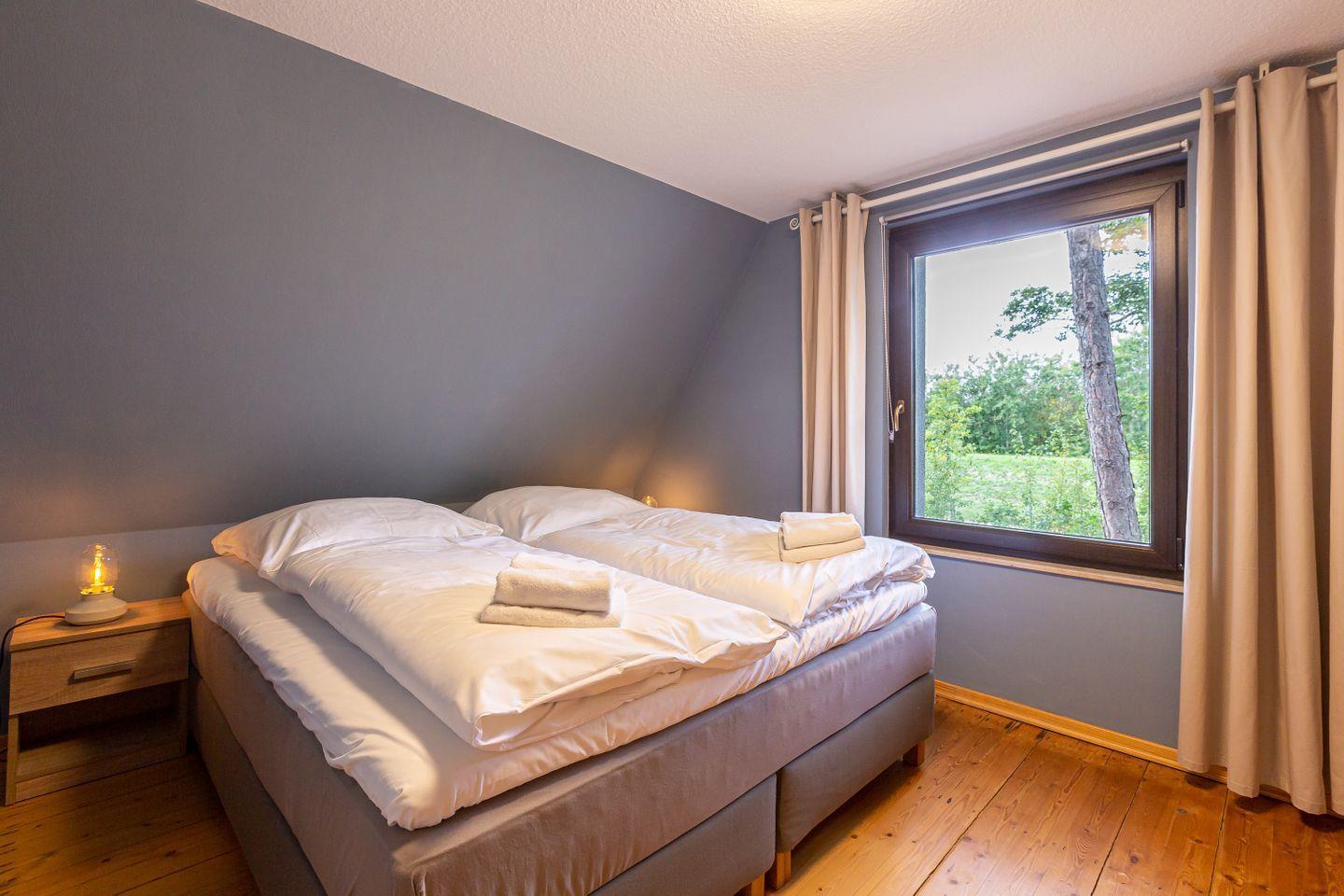 Das ehemalige Sommerhaus ist in 2022 aufwendig saniert worden und begeistert mit einem ganzjährig erholsamen Ostseeurlaub. Es vereint fischlandtypische Architektur, natürliche Baumaterialien und eine moderne Ausstattung, die zusammen eine entspannte Urlaubsatmosphäre schaffen. Der großzügige Wohn- und Essbereich ist zweifelsohne der Mittelpunkt des Hauses. Hier kann man es sich auf dem großen XXL-Sofa gemütlich machen oder gemeinsam mit der Familie am Esstisch klönen. Dank der vollausgestatteten Küche, die ein wenig separat und doch offen gestaltet ist, lässt es sich hier nach Herzenslust kochen. Auch das Tageslichtbad mit Dusche/ WC und Handtuchhalter befindet sich im Erdgeschoss. Über die Treppe im Eingangsbereich gelangt man in die zwei Schlafzimmer des Ferienhauses. Hochwertige Doppelbetten, warme Farben und ausreichend Stauraum für die Kleidung schaffen die perfekten Rückzugsorte für einen erholsamen Schlaf.