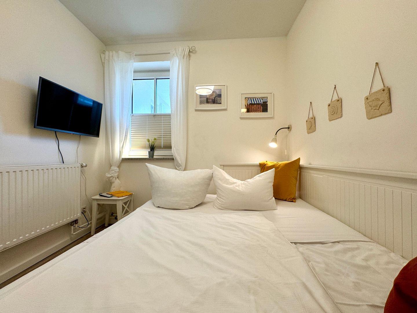 Ein geräumiges Erdgeschoss-Appartement für maximal 6 Personen mit einer sonnigen Südterrasse. Das Appartement bietet ein Wohnzimmer mit Schlafcouch und integrierter Küchenzeile, sowie zwei Schlafzimmer mit jeweils einem komfortablen Doppelbett. Das Badezimmer ist mit einer Dusche/WC und einer Waschmaschine, die gegen eine Gebühr genutzt werden kann ausgestattet. Haustier sind erlaubt, das Rauchen jedoch nicht. WLAN steht zur Verfügung, um Ihnen einen bequemen Internetzugang zu ermöglichen. Ihnen steht von Mai bis Oktober kostenlos ein Strandkorb am Strand zur Verfügung. Den Schlüssel erhalten Sie für Ihren Aufenthalt direkt über die Strandkorbvermietung Pagels. Diesem Appartement ist der Tiefgaragenstellplatz Nr. 28 zugeordnet.