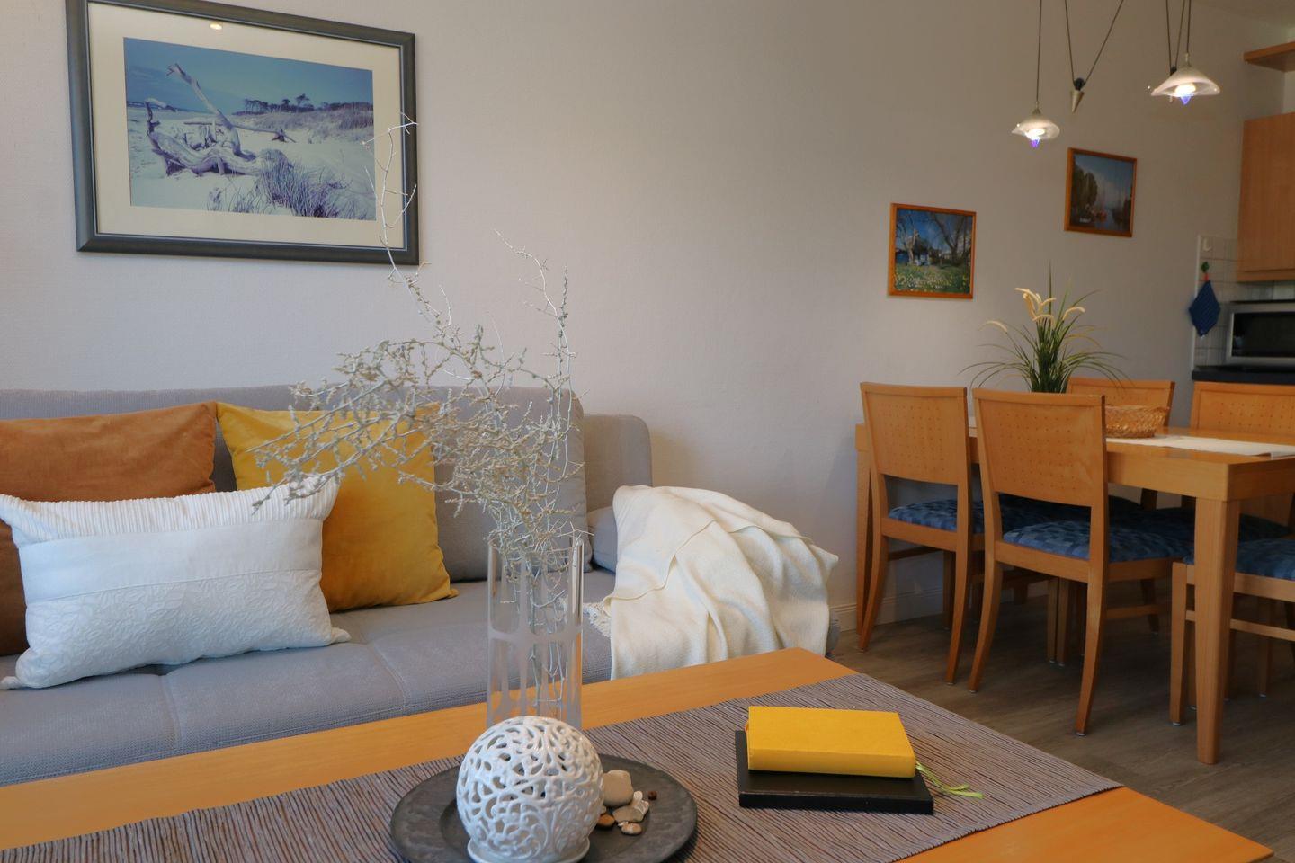 Ein charmantes Appartement im Obergeschoss für maximal 4 Personen mit einem Balkon Richtung Westen und Blick auf die Ostsee. Das Appartement verfügt über ein Wohnzimmer mit einer Schlafcouch und integrierten Küchenzeile, sowie ein Schlafzimmer mit einem gemütlichem Doppelbett. Das Badezimmer ist mit Dusche, WC und einer Waschmaschine ausgestattet. Haustiere und Rauchen sind nicht gestattet, jedoch gibt es WLAN für einen bequemen Internetzugang während des Aufenthalts. In den Reisezeiten B und C kann kos-tenfrei im Dorint Hotel der SPA genutzt werden. Diesem Appartement wird der Tiefgaragenstellplatz Nr. 44 zugeordnet.
