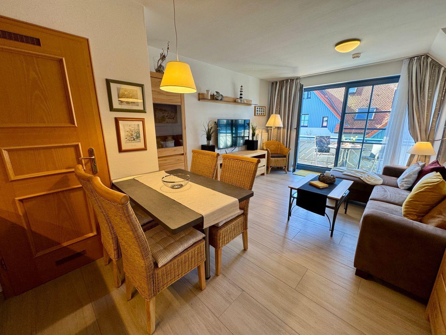 Ein gemütliches Obergeschoss-Appartement für maximal 4 Personen mit einem Südbalkon und eingeschränktem Ostseeblick. Das Appartement Verfügt über ein Wohnzimmer mit Schlafcouch und integrierter Küchenzeile und ein Schlafzimmer mit einem gemütlichem Doppelbett, für erholsamen Schlaf. Das Badezimmer ist mit einer Dusche und WC ausgestattet. Haustiere sind erlaubt, jedoch ist das Rauchen nicht gestattet. WLAN ist verfügbar, um Ihren Aufenthalt zu vervollständigen. Im Gemeinschaftsraum in der Tiefgarage stehen Waschmaschine und Trockner gegen Gebühr zur Verfügung. Ideal für einen entspannten Aufenthalt! Diesem Appartement ist der Tiefgaragenstellplatz Nr. 32 zugeordnet.