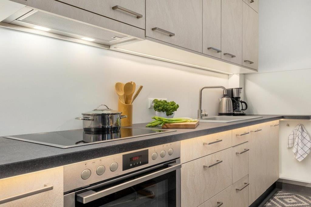 , , Stue(, enkeltsovesofa, Fjernsyn), Køkken(, spisebord, kogeplade, elkedel, brødrister, kaffemaskine, ovn, mikrobølgeovn, opvaskemaskine , køleskab, fryser), soveværelse(dobbeltseng), badeværelse(, bruser, håndvask, føntørrer), Internetadgang, Internetadgang, tørretumbler, vaskemaskine, varme, terrasse(havemøbler), havemøbler, parkering, strygebræt, strygejern, tørreskab