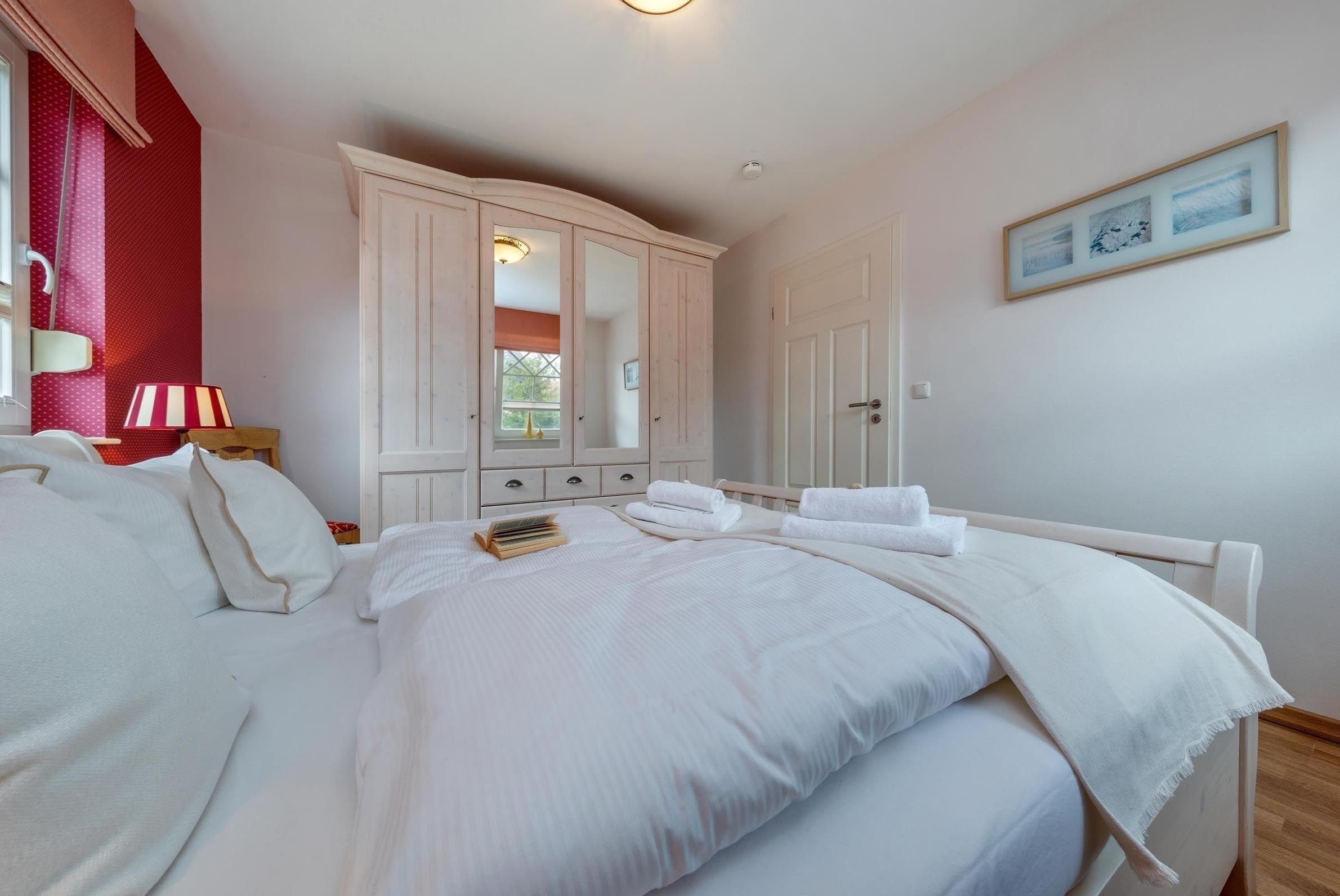Die Ferienwohnung bietet eine einladende und allergikergeeignete Umgebung für erholsame Aufenthalte. Sie verfügt über ein Schlafzimmer mit einem komfortablen Doppelbett und ein Wohnschlafzimmer mit einer zusätzlichen Schlafcouch. Die offene Küche ist modern ausgestattet mit einem Elektro-/Gasherd, Backofen, Mikrowelle, Kühlschrank, Geschirrspüler und Kaffeemaschine. Ein Esstisch lädt zum gemeinsamen Essen ein. Das Badezimmer mit Fenster ist mit einer bodengleichen Dusche, einem Kosmetikspiegel und einem Haartrockner ausgestattet.