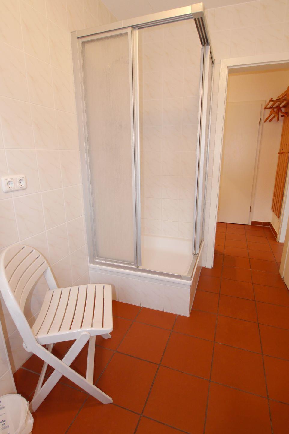 Im Wohnbereich führt eine Wendeltreppe in die obere Etage. Hier befinden sich nochmals eine kleine Sitzecke mit einem 2. TV Gerät sowie zwei Einzelbetten. Diese Wohnung verfügt über einen WLAN –Zugang. Auch hier steht ein Fahrradschuppen zur allgemeinen Nutzung zur Verfügung.