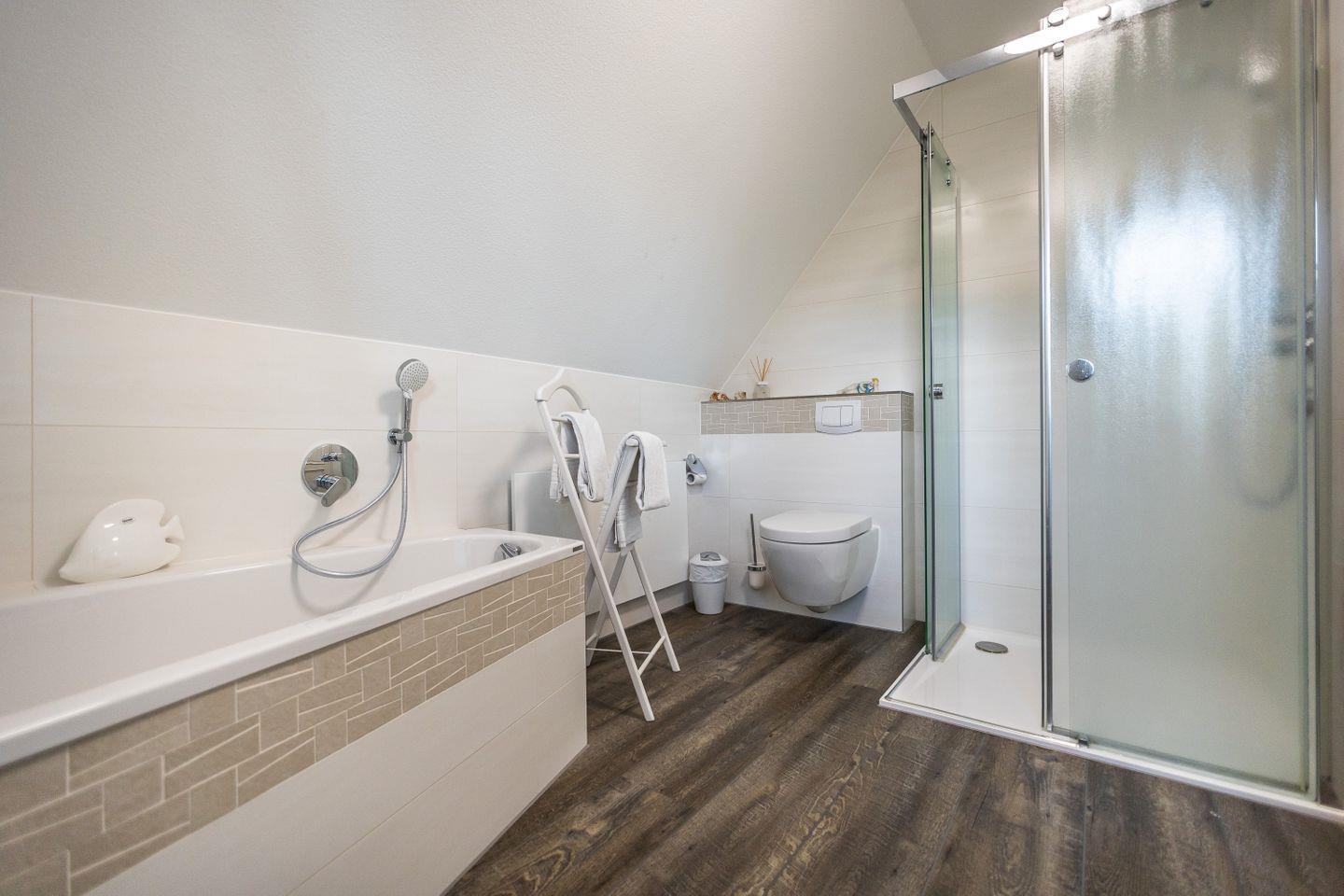 Es sind in beiden Schlafzimmern TV-Geräte vorhanden. Auf der Terrasse befindet sich ein Strandkorb. Für Ihre Fahrräder steht ein Schuppen zur Verfügung.