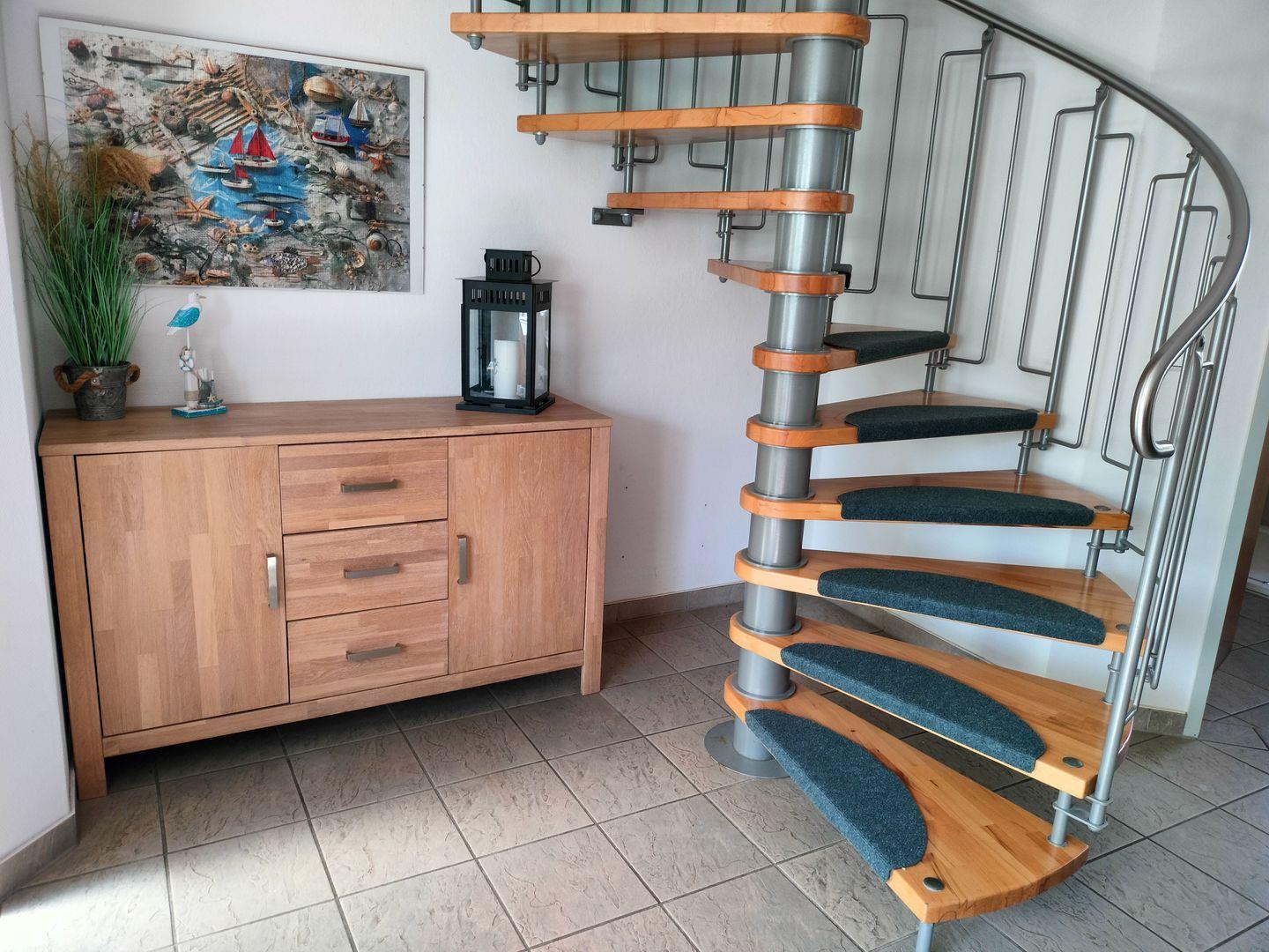 Die beiden Schlafzimmer befinden sich in der 1. Etage, davon ist eines mit einem Doppelbett ausgestattet. Das Kinderzimmer verfügt über zwei Einzelbetten, eins kann für die 5. Person ausgezogen werden.