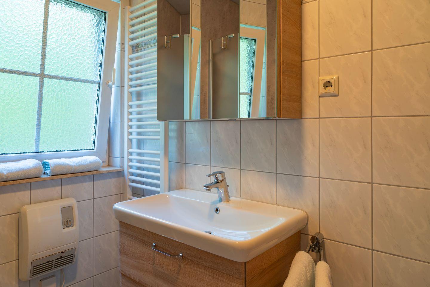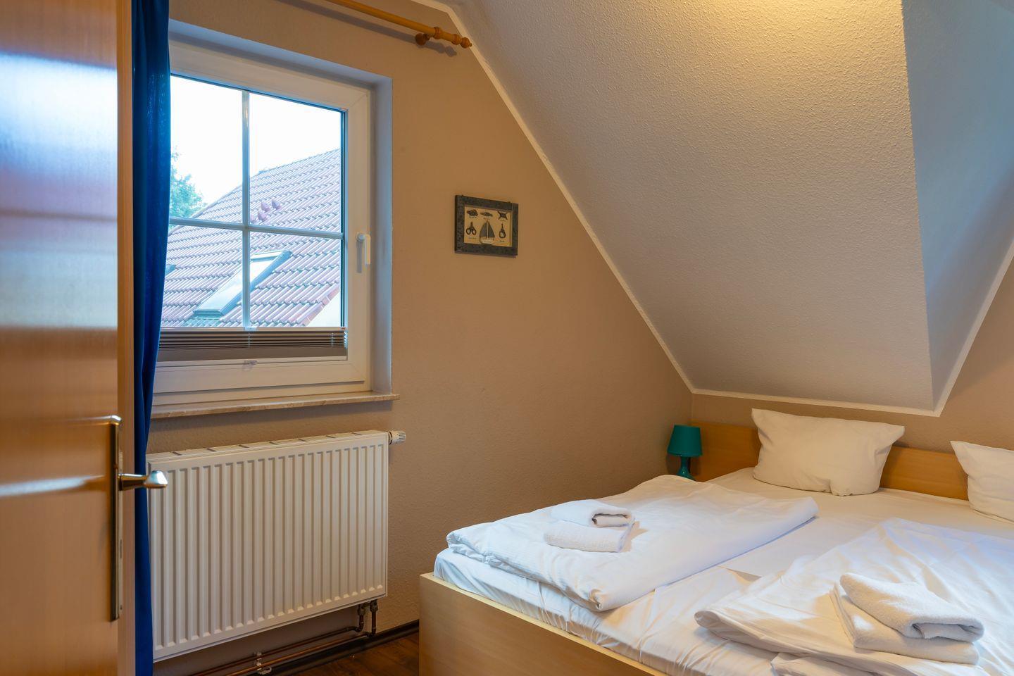 Die Unterkunft verfügt über zwei Schlafzimmer mit insgesamt vier Schlafmöglichkeiten, die durch Teppichboden für eine angenehme und warme Atmosphäre sorgen. Für Ihren Komfort steht Ihnen ein modernes Badezimmer mit Dusche, WC und Haartrockner bereit. Zusätzlich gibt es ein separates Gäste-WC. Alle Fenster im Haus sind mit Fliegengittern und Sichtschutz ausgestattet und lassen sich gut verdunkeln.