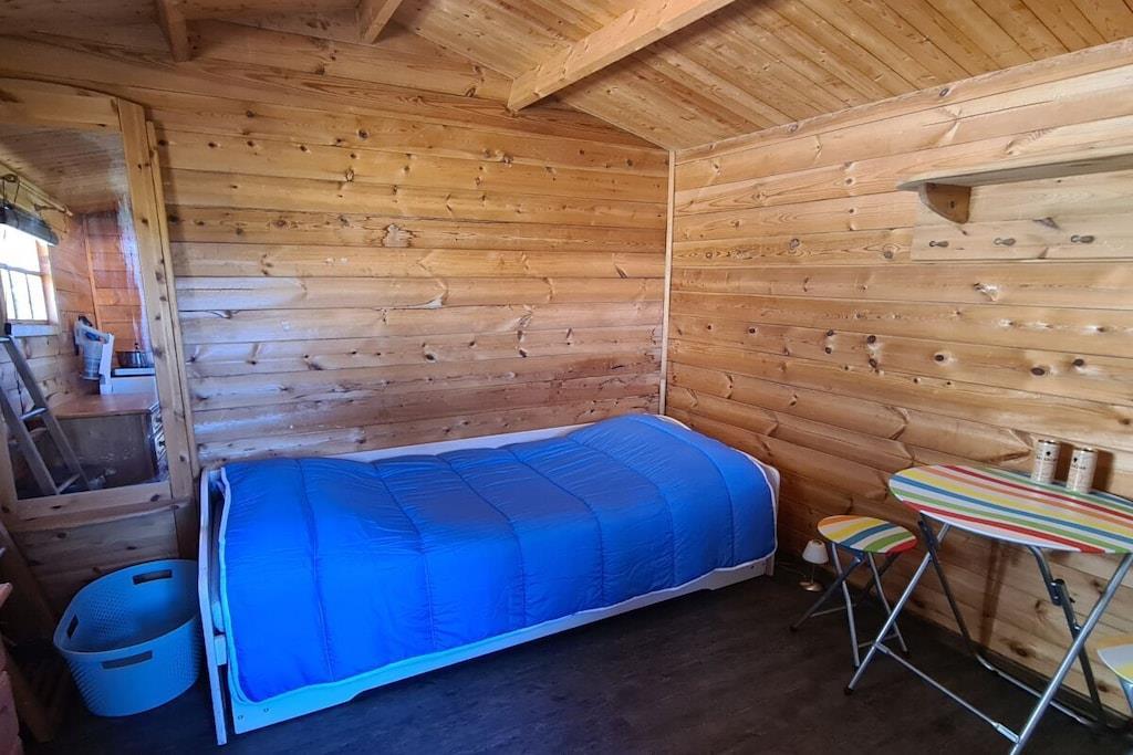 Sie brauchen nicht viel, um glücklich zu sein? Dann kommen Sie in unser kleines Sternchen. In dem knuffigen Ferienzimmer im Holzhaus finden Sie auf 9 qm zwar nicht viel Luxus aber doch alles, was Sie für einen gemütlichen Urlaub brauchen. Zwei bequeme Einzelbetten (Ausziehbett (2x90x200) warten auf Sie und ihren Partner. Aufgrund der wunderbar zentralen Lage unserer Villa können Sie danach ganz spontan entscheiden, wonach Ihnen ist. Nur wenige Gehminuten trennen Sie von dem kilometerlangen Sandstrand der Insel. Unser Sternchen hat keine Heizung. Auch das Waschhaus mit Dusche und WC ist über einen kleinen Weg über das Grundstück erreichbar. Dort finden Sie auch eine Spüle zum Abwaschen und eine Waschmaschine.