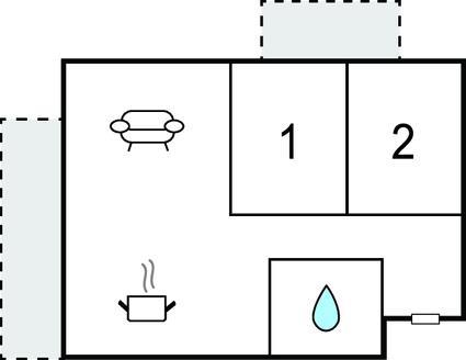 Opholdsstue/køkken - 1 Soveplads. (Sofa, madras eller lignende).