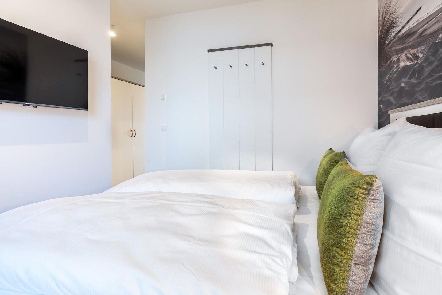 Im modern-behaglichen Wohn-Essbereich befindet sich eine Doppelschlafcouch (1,60 x 1,95 m) und ein großer Flatscreen-TV (43 Zoll). Der moderne Schlafbereich mit seinem offenen Wohnkonzept bietet hohen Schlafkomfort durch zwei Boxspringbetten (0,90 x 2,00 m) und ist mit einem weiteren Flatscreen-TV (40 Zoll) sowie Kleiderschrank und Sitz-/Kofferbank ausgestattet. Das stilvolle Badezimmer verfügt über eine ebenerdige Regendusche, WC, Waschtisch mit Föhn, Handtuchheizkörper und Fußbodenheizung.