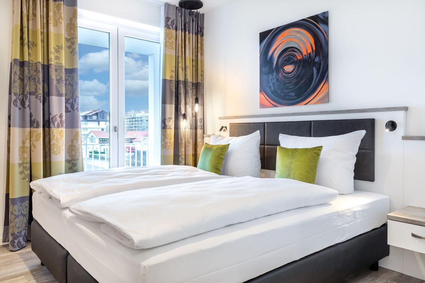 Das 68 m² große 2-Zimmer Apartment ist für bis zu 4 Personen geeignet. Das großzügige Apartment verfügt über gleich zwei sonnige und überdachte Balkone in Süd-Ost- bzw. in Süd-West-Lage; Von hier aus habt ihr einen einmaligen Blick auf die Ostsee und genießt das wohltuende Meeresklima.