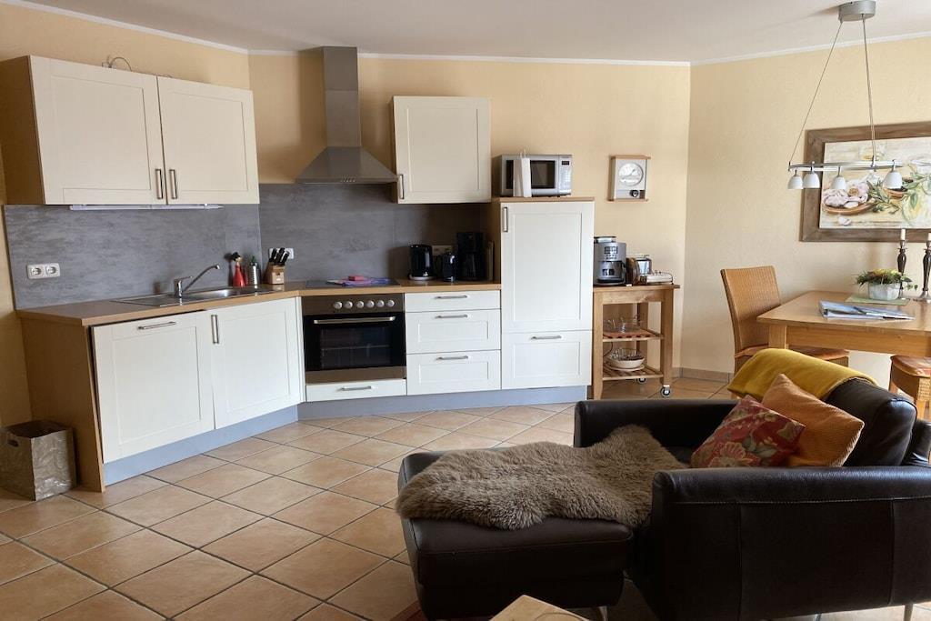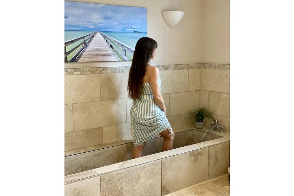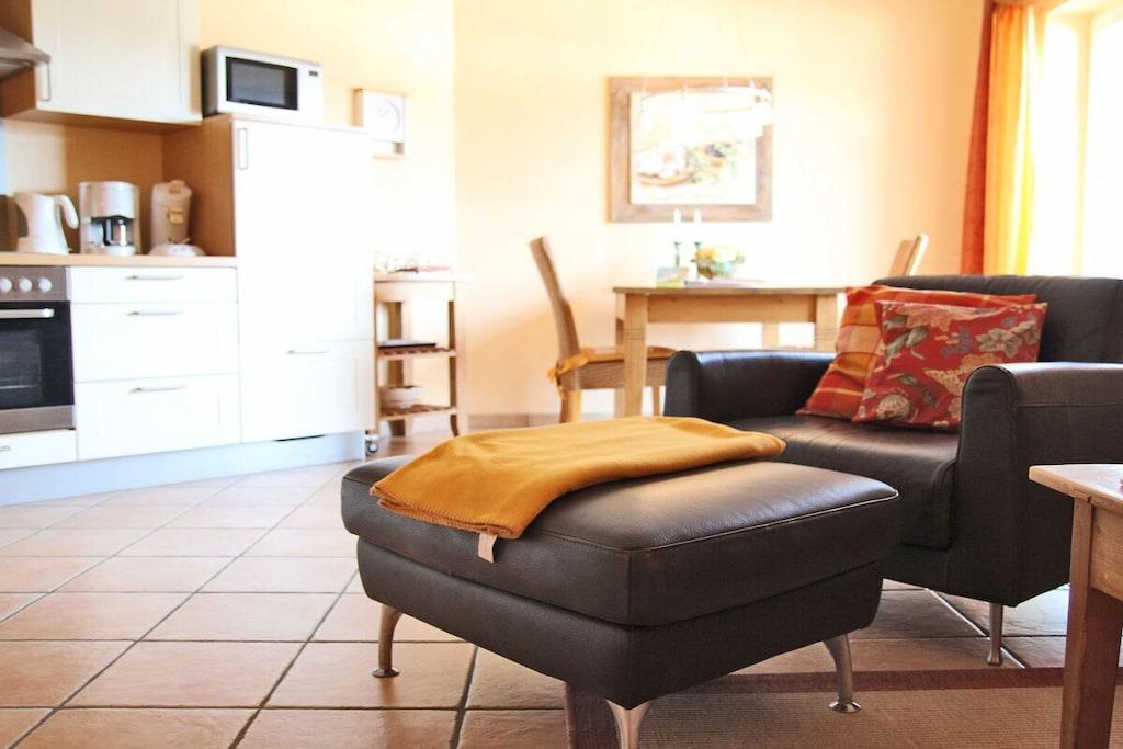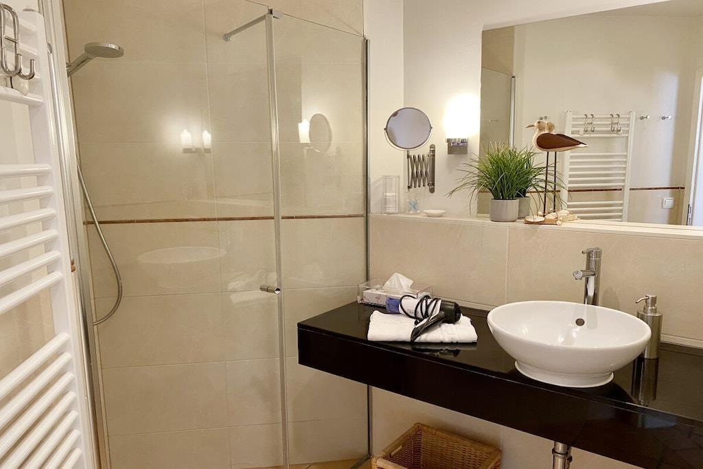 Ferielejlighed nr. 12 – Wellness Residence Zingst Centralt beliggende, men roligt – i et af Zingsts smukkeste stråtagehuse. Kærligt møbleret med en solrig sydvestvendt altan, en romantisk himmelseng, gulvvarme, smart-tv, Wi-Fi og et fuldt udstyret køkken. Højdepunkt: Wellness-område med tre saunaer, Kneipp-pool og afslapningsområde. Ankom. Føl dig godt tilpas. Slap af.